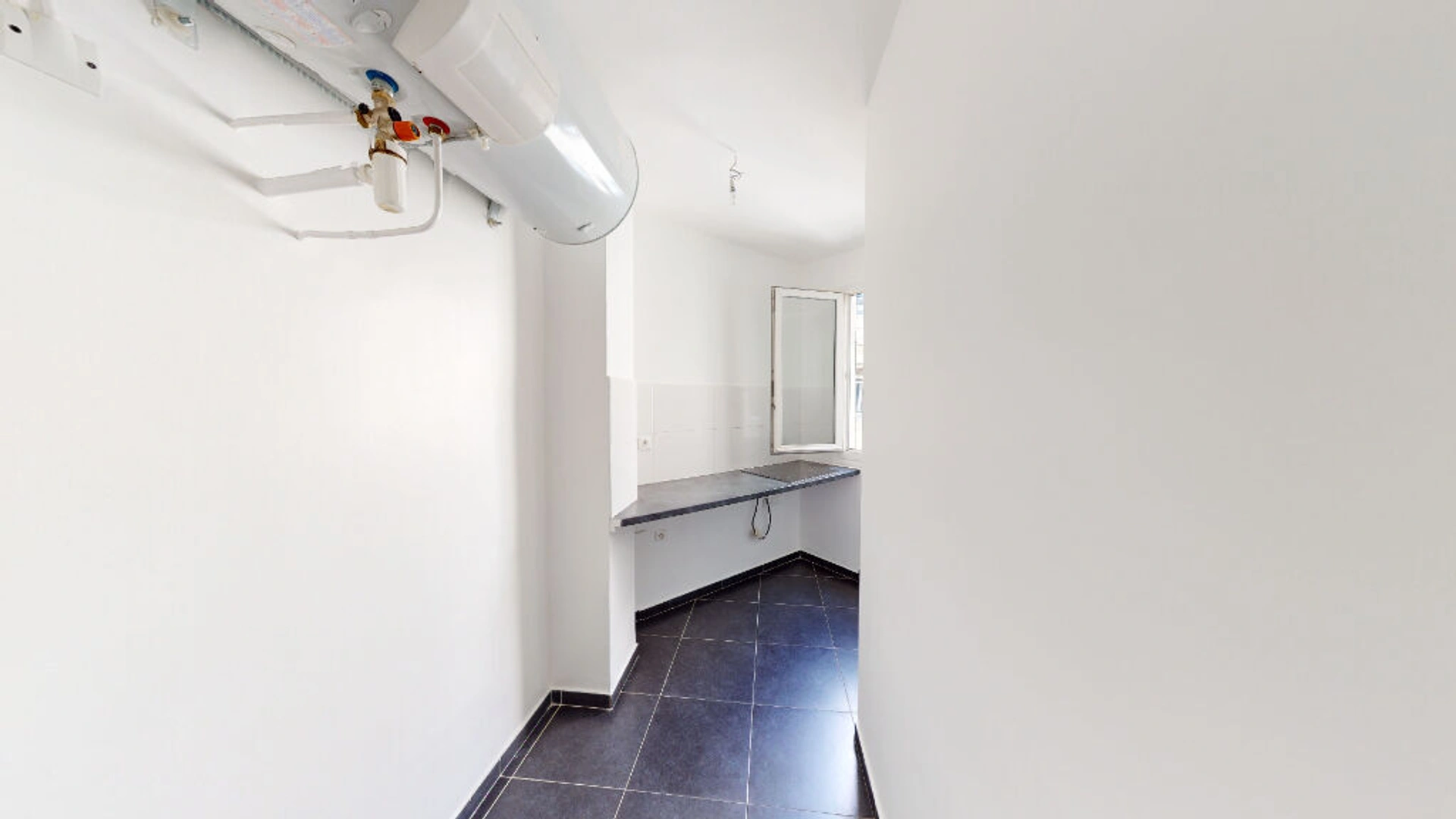 D'une surface de 40.89 m² Carrez, il comprend une entrée, un séjour avec balcon, une chambre, une cuisine semi-équipée séparée, une salle de bains et des WC séparés.