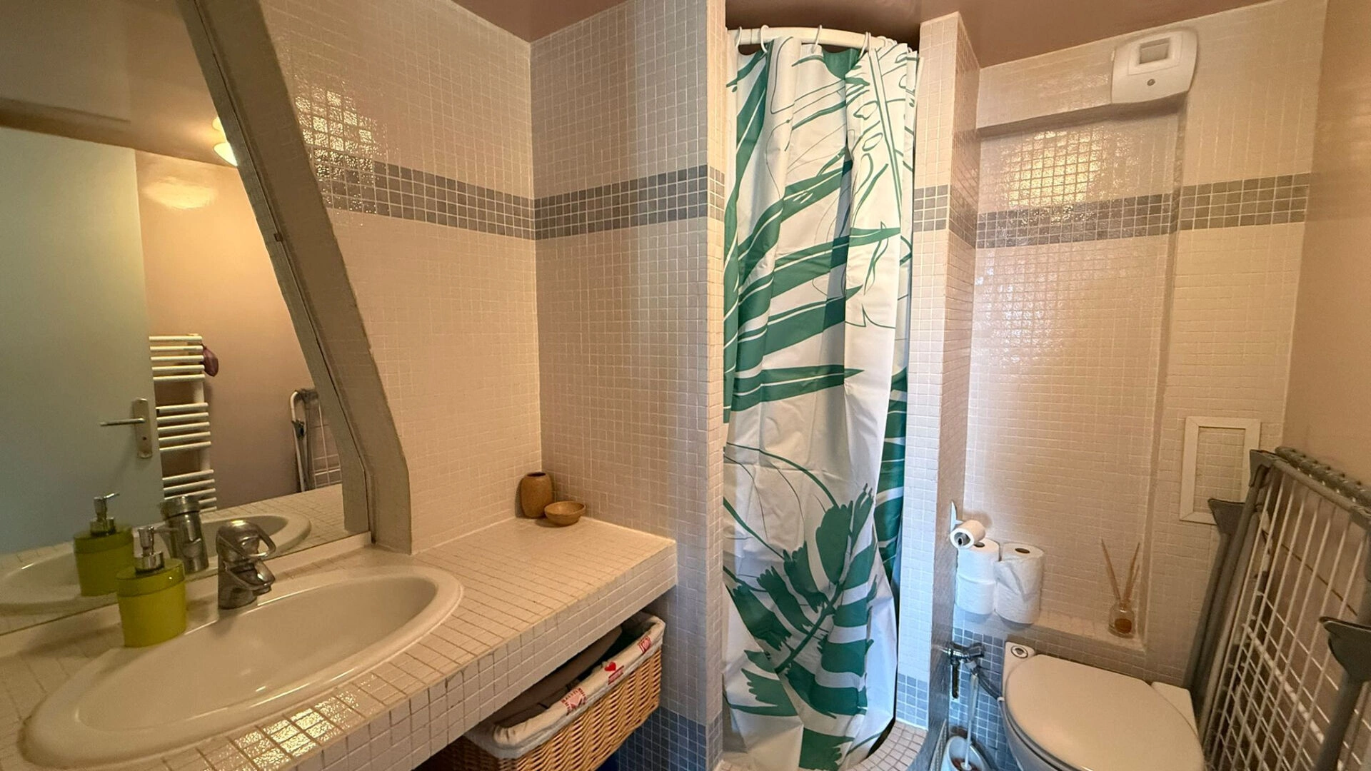 L'appartement est en parfait état général. Il se compose d'une belle pièce de vie, d'une cuisine ouverte aménagée et équipée, une mezzanine avec coin nuit, ainsi que d'une salle d'eau avec WC sanibroyeur.
