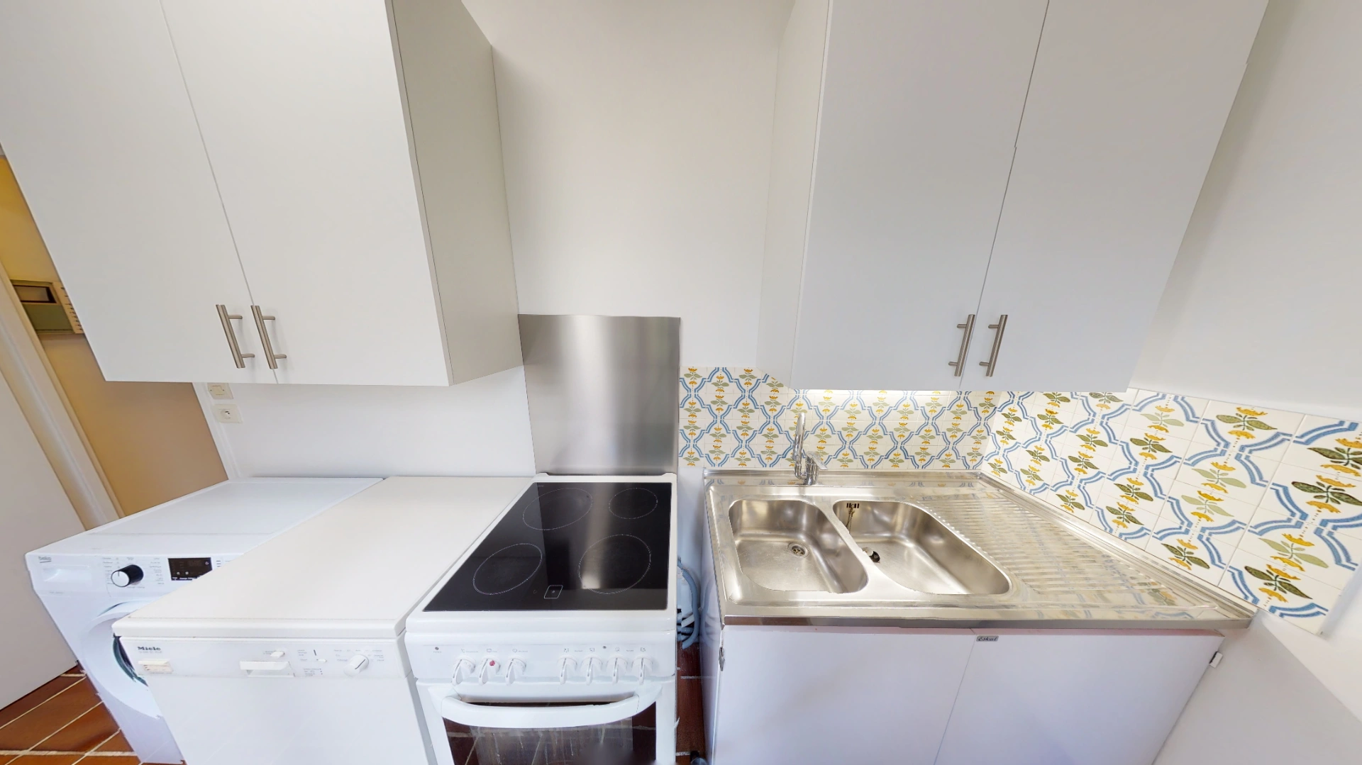 D'une surface de 34.39 m², cet appartement comprend une entrée avec rangement, une pièce à vivre donnant sur l'impasse privée, une cuisine séparée aménagée et intégralement équipée (machine à laver, lave-vaisselle, four) et une salle de bains avec WC.