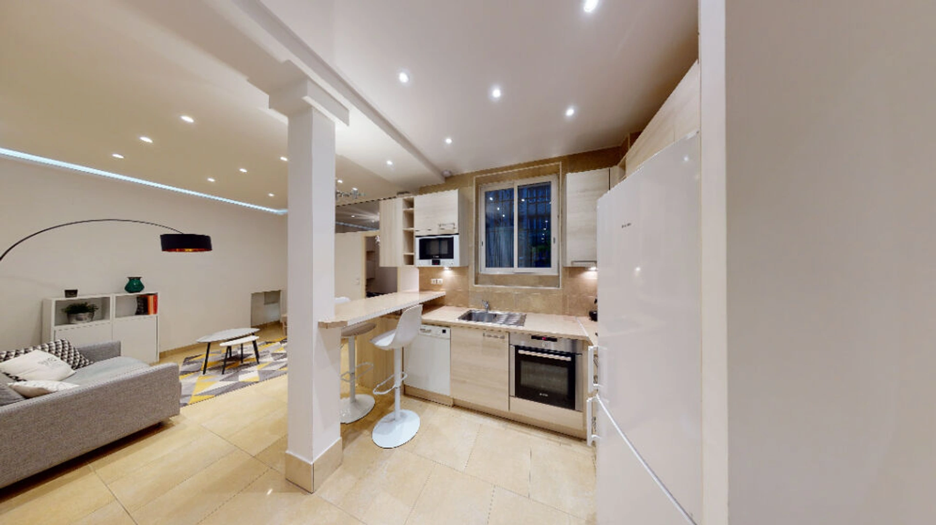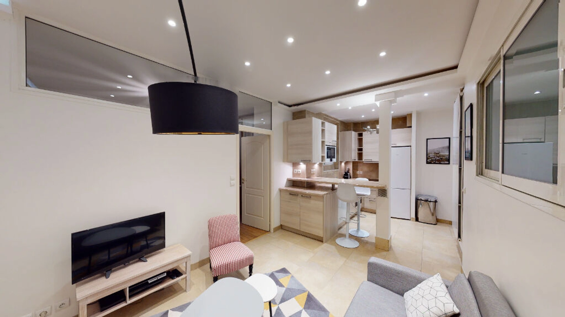 Au coeur du quartier Jasmin, dans un immeuble sécurisé des années 30, un bel appartement meublé de deux pièces en parfait état au RDC sur cour.
