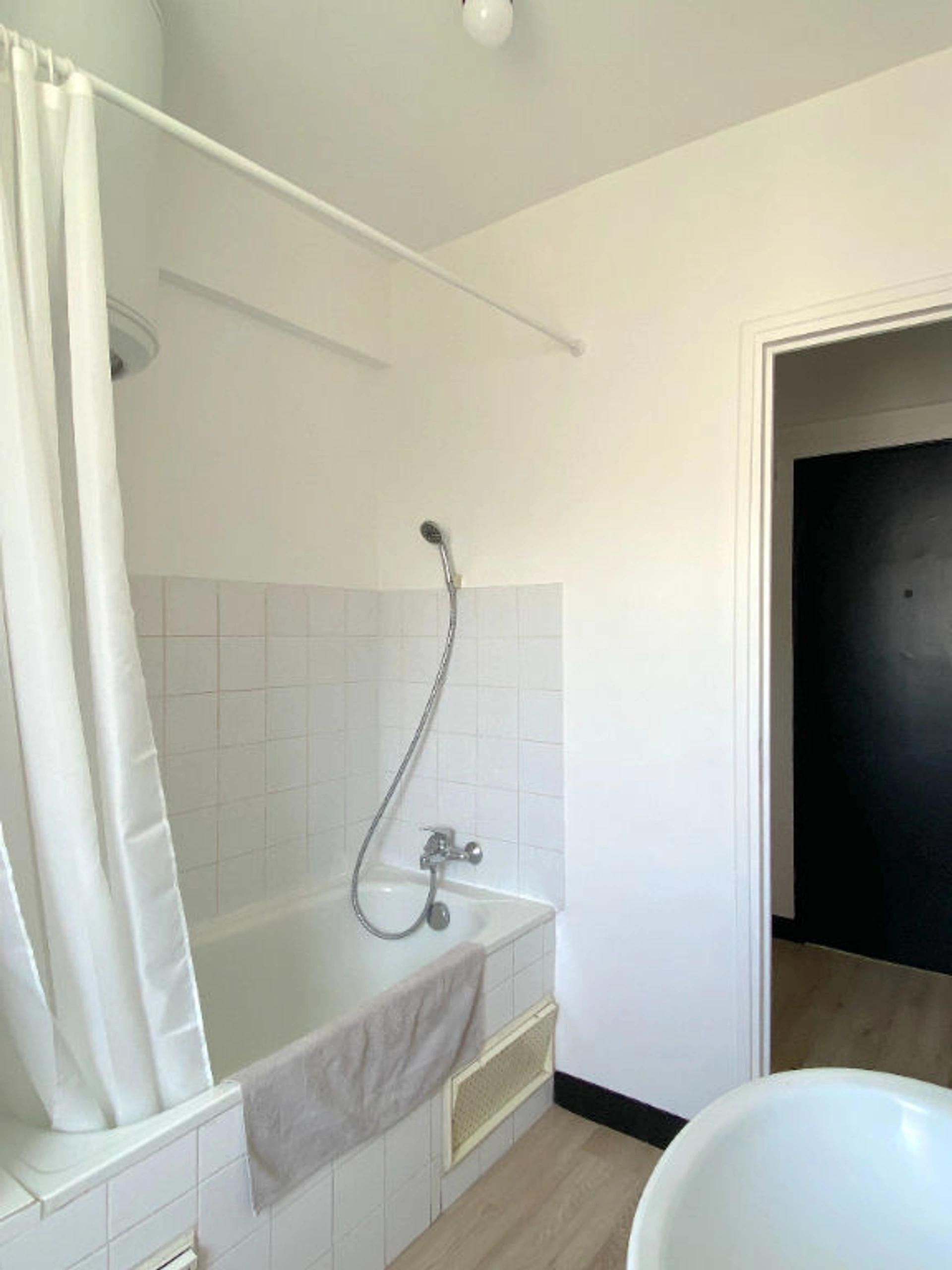 L'appartement se compose d'une entrée avec coin cuisine aménagée et équipée, d'une salle de bains avec WC séparés a l'intérieur et d'une pièce de vie lumineuse exposée plein sud.