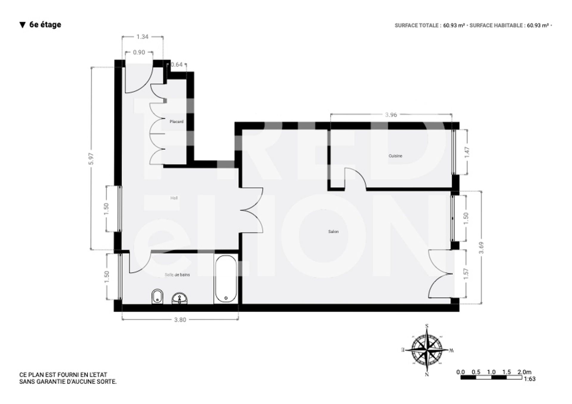 Avec ses 60m2, cet appartement offre un espace généreux pour créer un intérieur à votre image. Que vous souhaitiez créer une cuisine ouverte, définir des zones distinctes pour le salon et la chambre à coucher, ou même intégrer un espace de travail, les possibilités sont infinies.