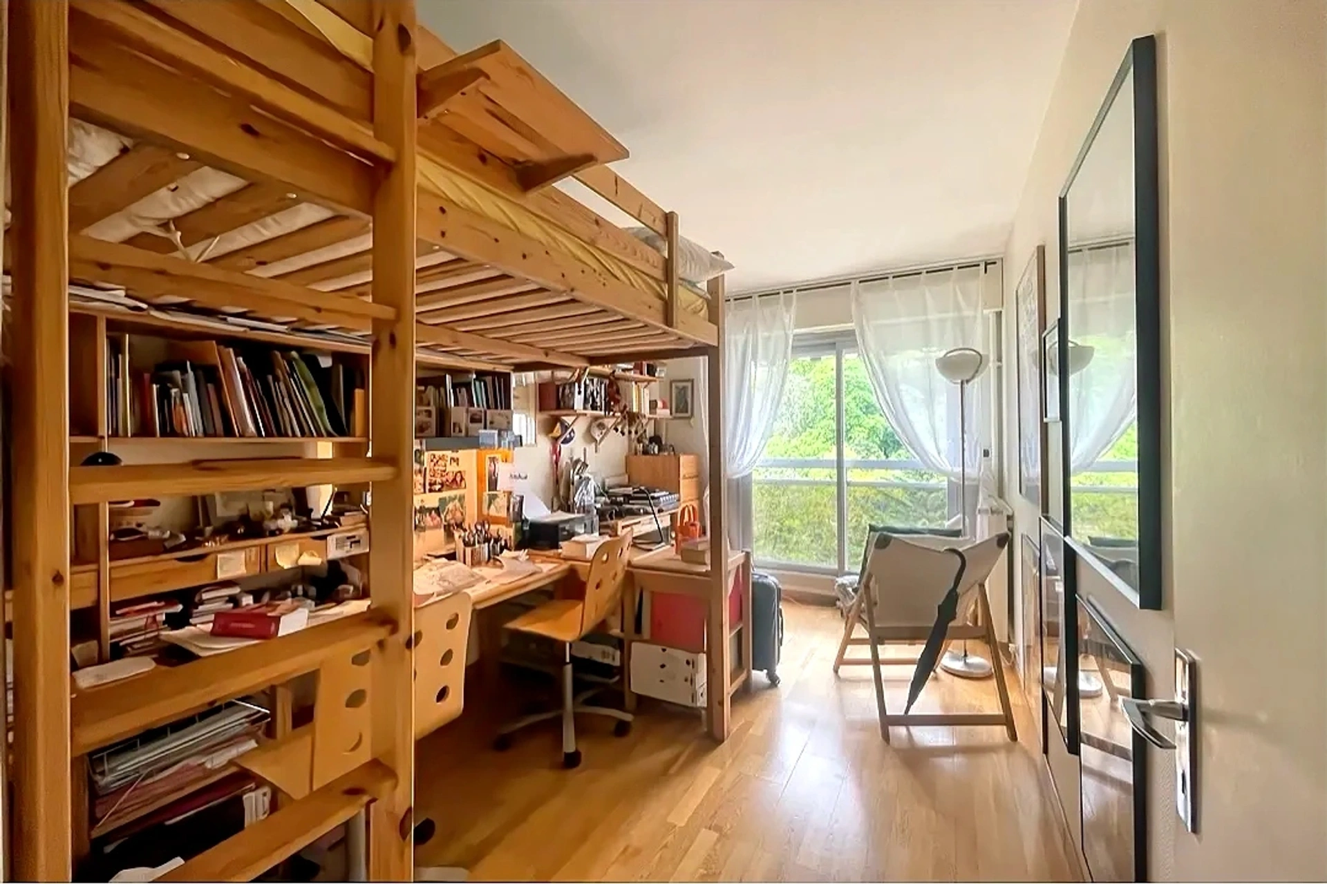 La chambre parentale est attenante au dressing avec point d'eau. Le second balcon (3m²) de cette chambre est exposé Sud Ouest offrant une vue dégagée sur un jardin et les abords du parc Montsouris.