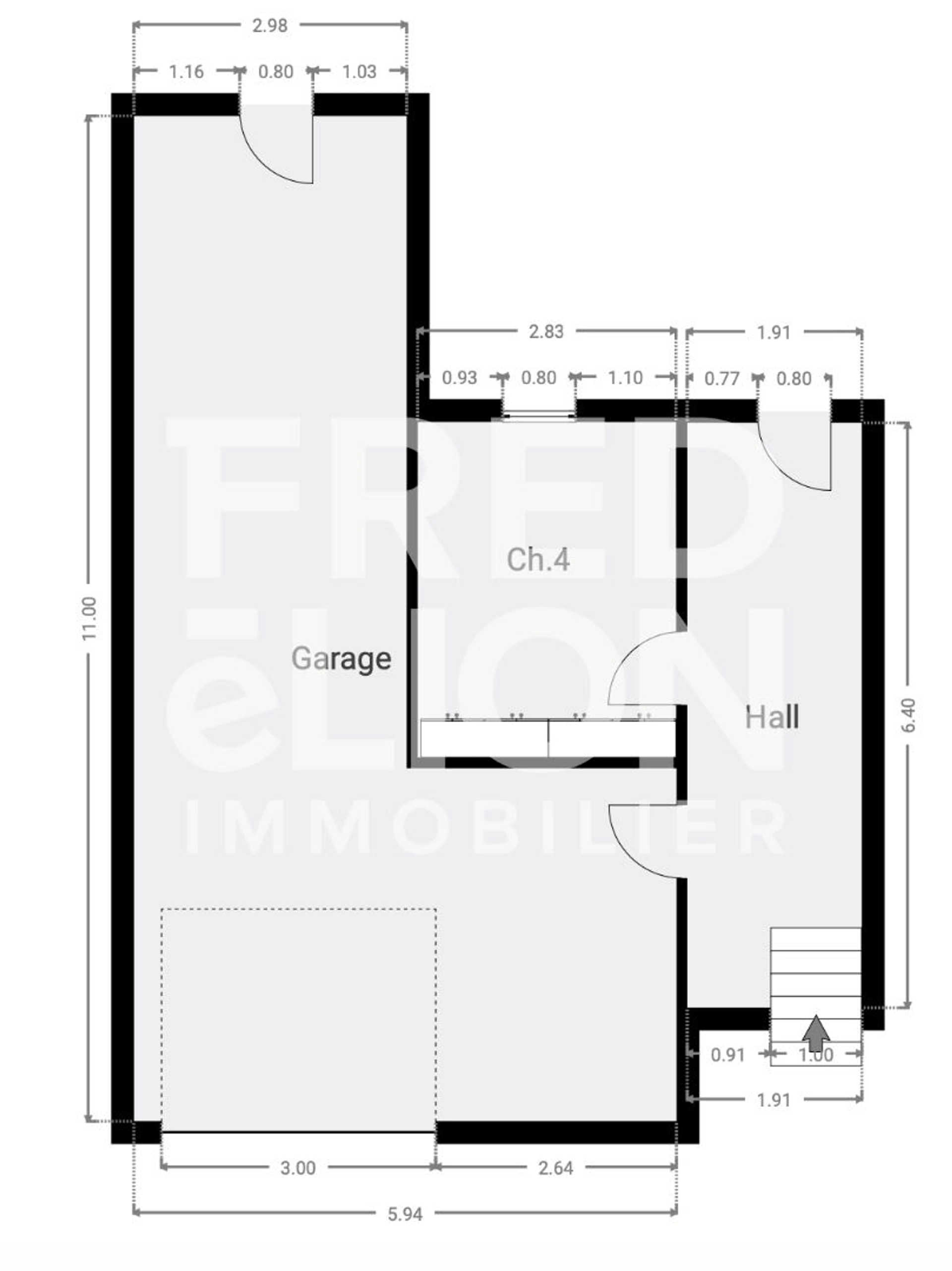 Elle est composée au rez-de-chaussée d'une entrée indépendante, d'un séjour/cuisine spacieux de 56 m2 avec sa luminosité traversante et un accès direct sur une terrasse et jardin ainsi qu'une salle d'eau avec WC.