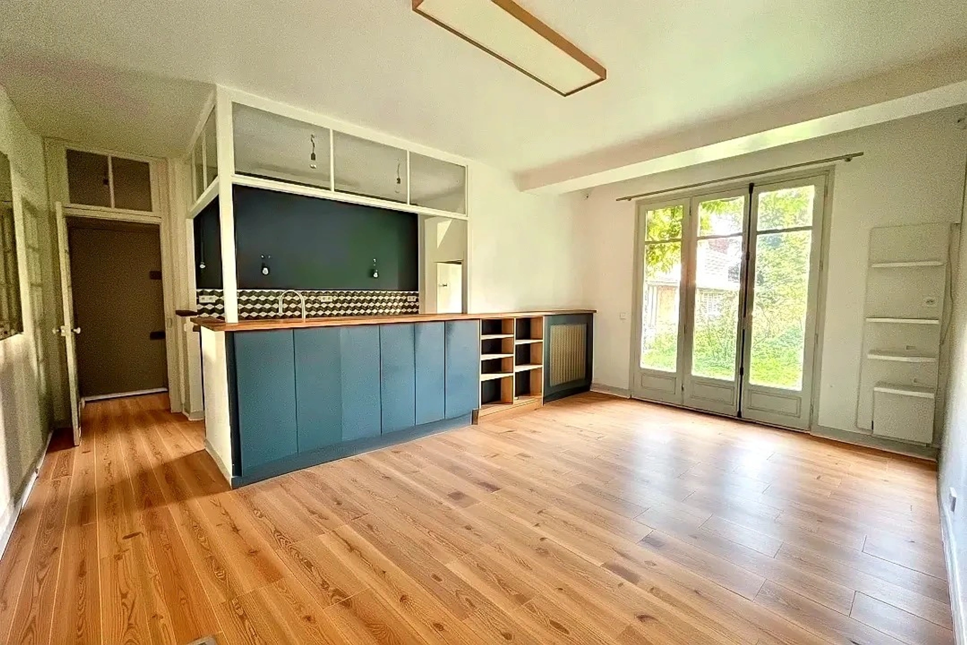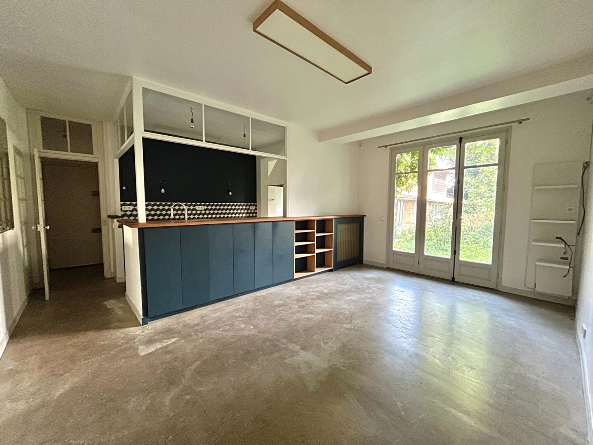L'appartement se compose d'une entrée desservant une belle pièce de vie de 30 m², lumineuse grâce à son exposition Est, avec séjour et cuisine ouverte donnant directement sur le jardin, au calme.