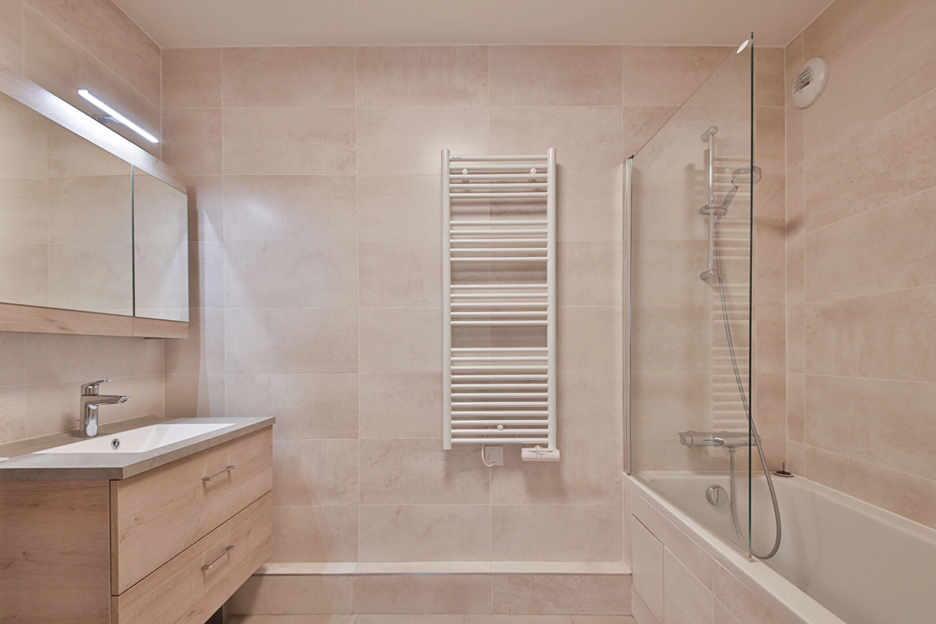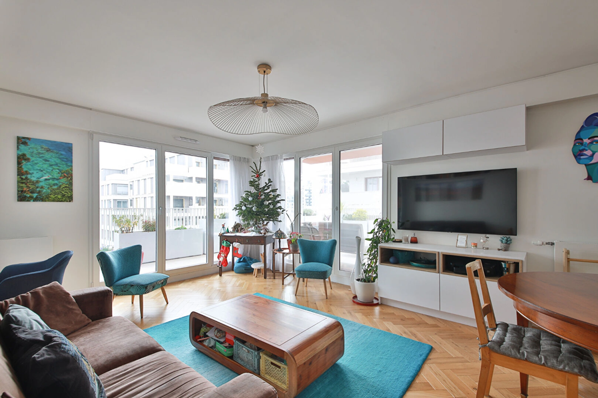 L'appartement se compose d'une entrée avec placard, d'un vaste double séjour lumineux bénéficiant d'une double exposition et ouvrant sur la terrasse, d'une cuisine ouverte Schmidt entièrement équipée, d'une chambre parentale très calme avec rangements intégrés et accès à un balcon, d'une seconde chambre donnant sur la terrasse, d'une grande salle de bains, ainsi que de WC séparés avec buanderie intégrée.