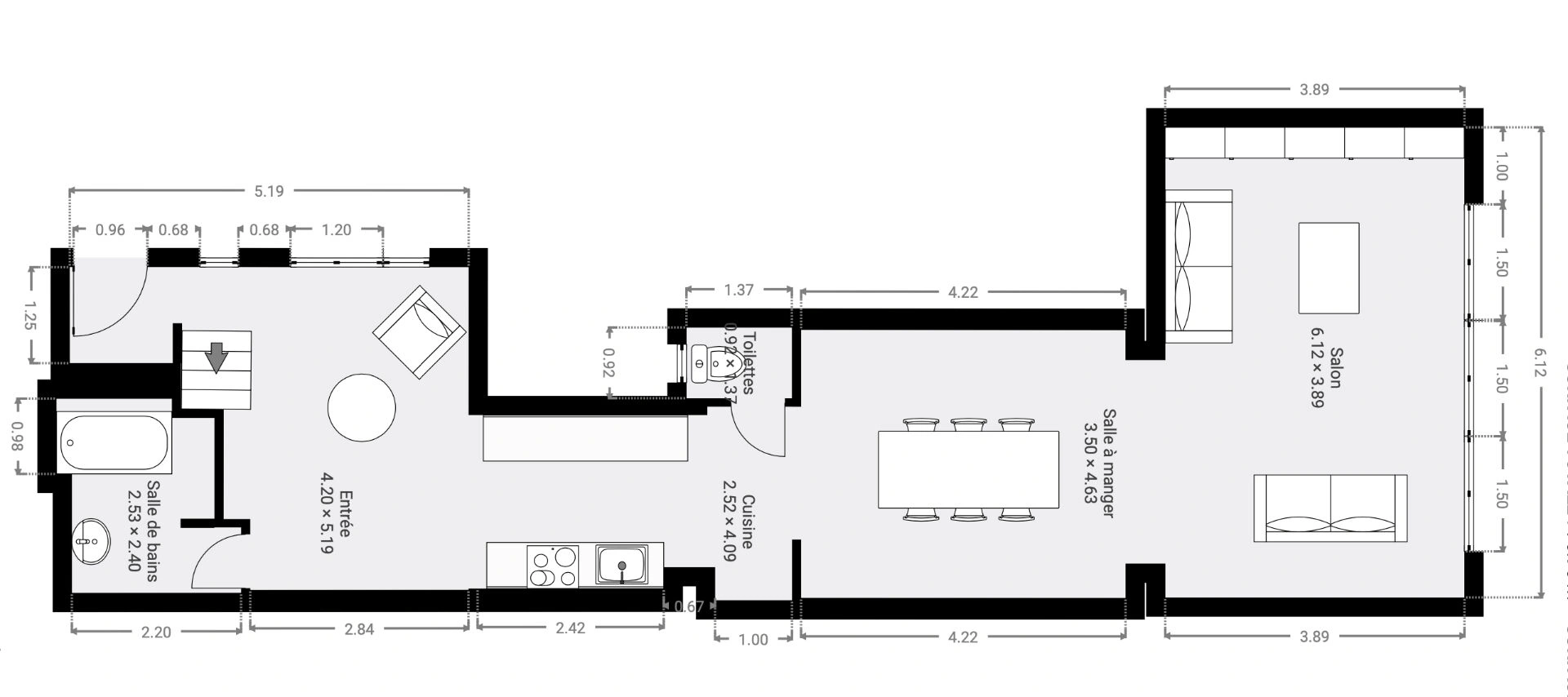 L'ensemble crée un espace de vie fluide, chaleureux et particulièrement lumineux, rare pour un rez-de-chaussée.