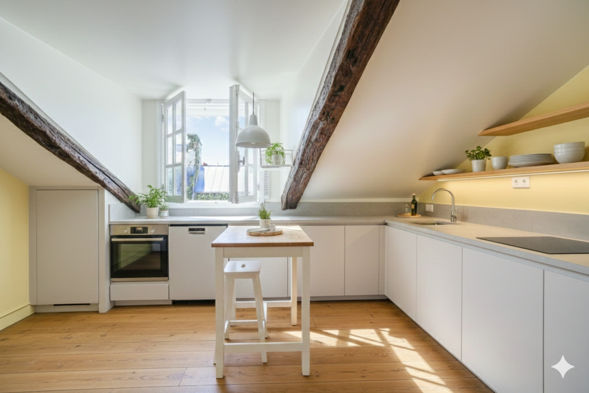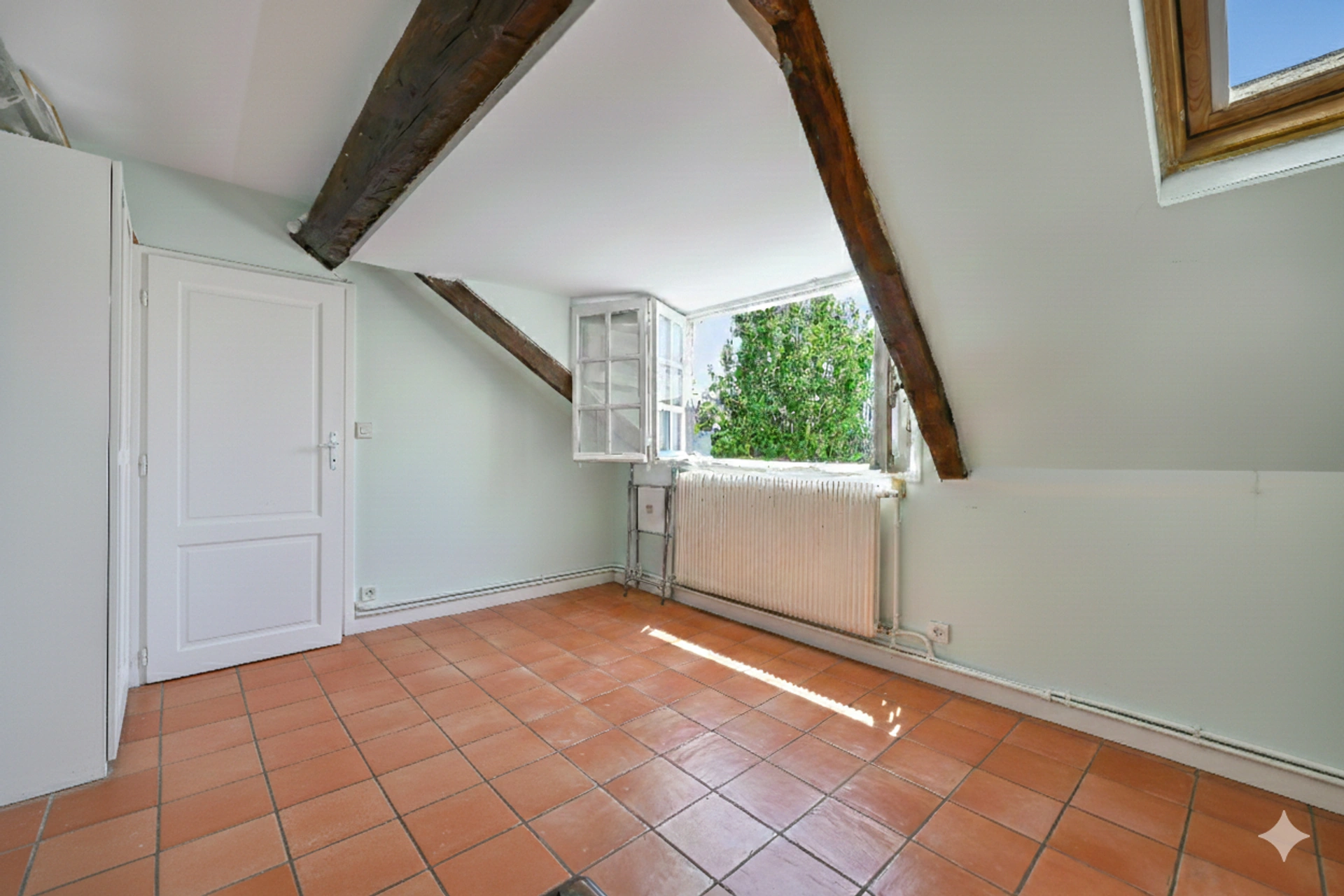 Charme de l'ancien et vue dégagée sur une belle cour arborée du Marais historique. Surface de 50.16 m2 au sol dont 38.68 m2 carrez. (3.91 % honoraires TTC à la charge de l'acquéreur.)