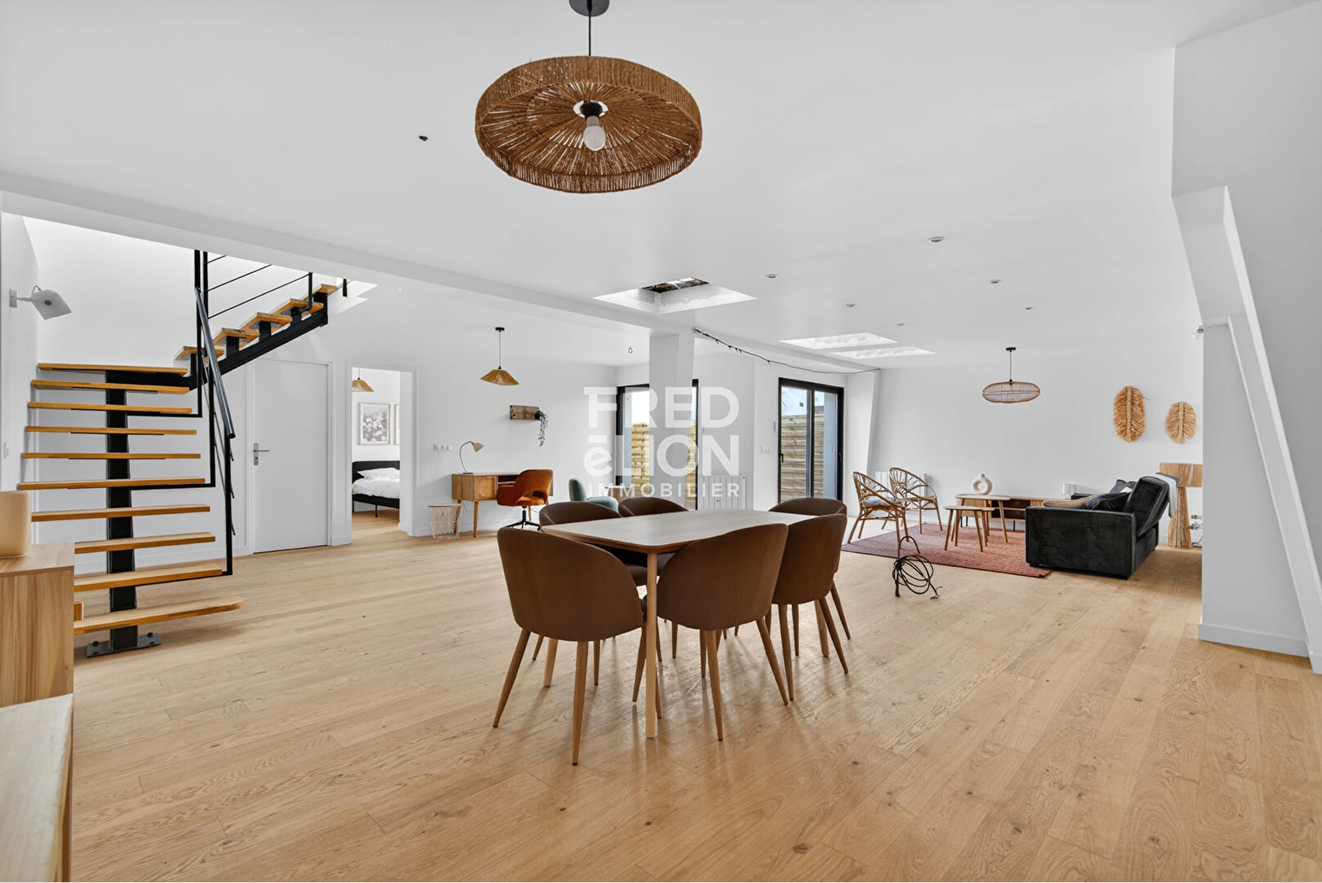 Le premier niveau dévoile une spectaculaire pièce de vie de 76 m² (incluant un espace cuisine à aménager selon vos goûts). Baigné de lumière grâce à ses larges baies vitrées et son exposition Ouest, ce vaste séjour s'ouvre directement sur un jardin privé de 30 m², idéal pour vos moments de détente à l'abri des regards. Ce niveau comprend également une belle suite parentale équipée de sa salle d'eau et de WC.