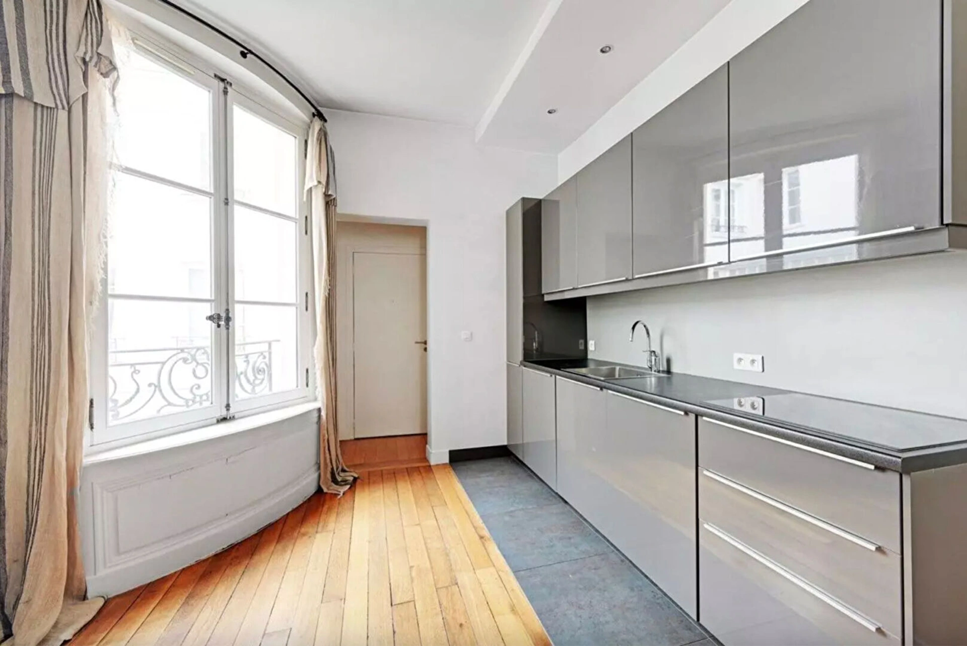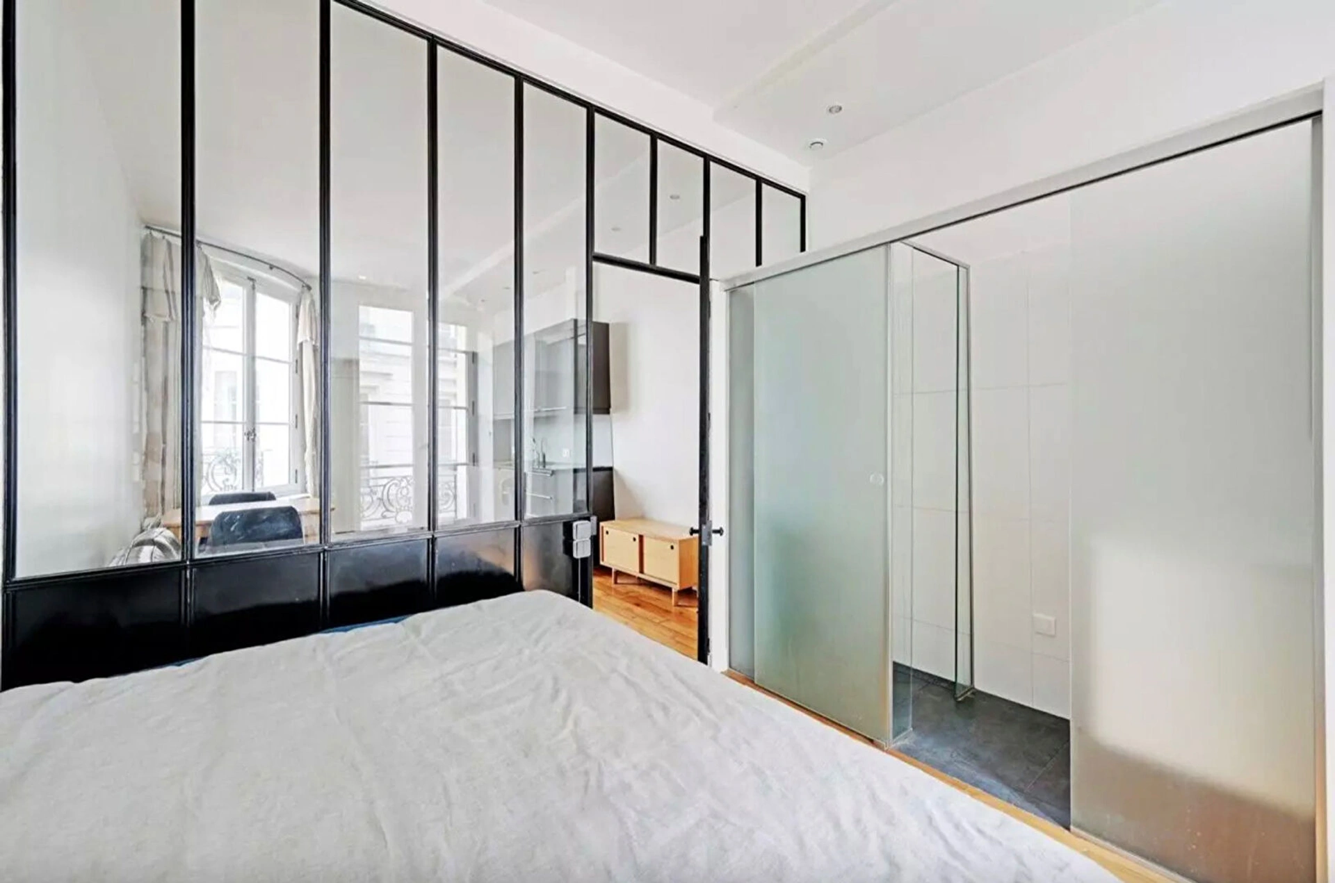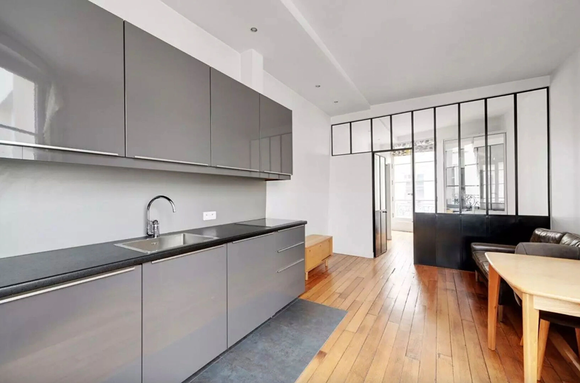 Niché dans un somptueux immeuble du XVIIe siècle, ce deux pièces de 30 m², entièrement refait à neuf, incarne à la perfection l'alliance du cachet de l'ancien et du confort contemporain.