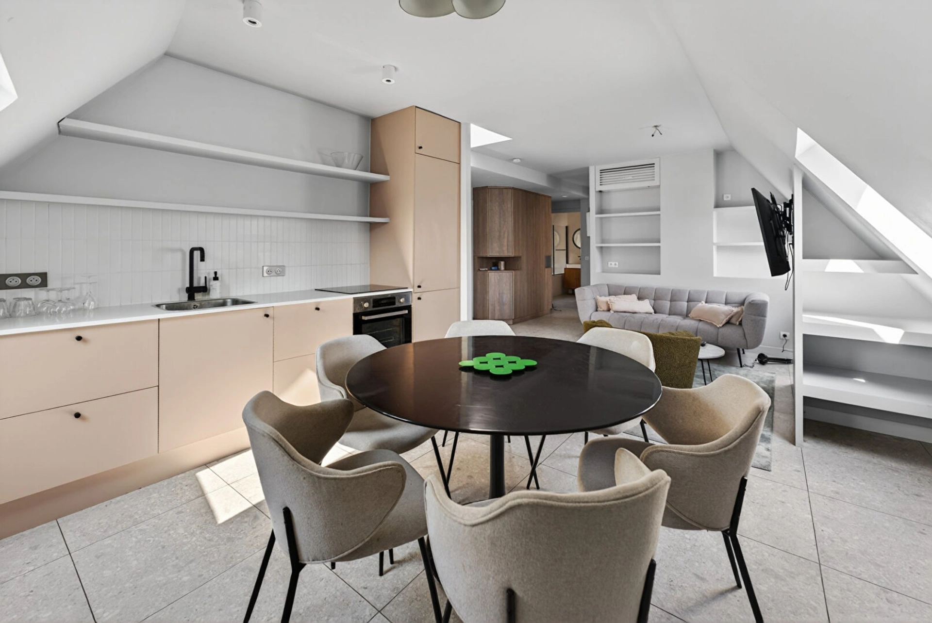 Ce bien atypique et plein de charme, niché sous les toits, séduit par son agencement optimisé et son atmosphère chaleureuse. Il se compose d'un séjour avec cuisine ouverte, offrant un espace de vie convivial, de trois chambres, dont une suite parentale avec salle d'eau privatives, ainsi que des espaces aménagés avec caractère.