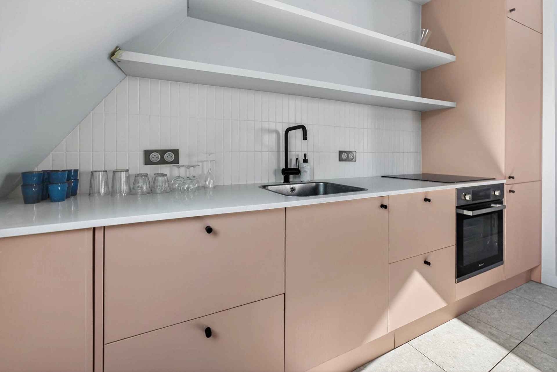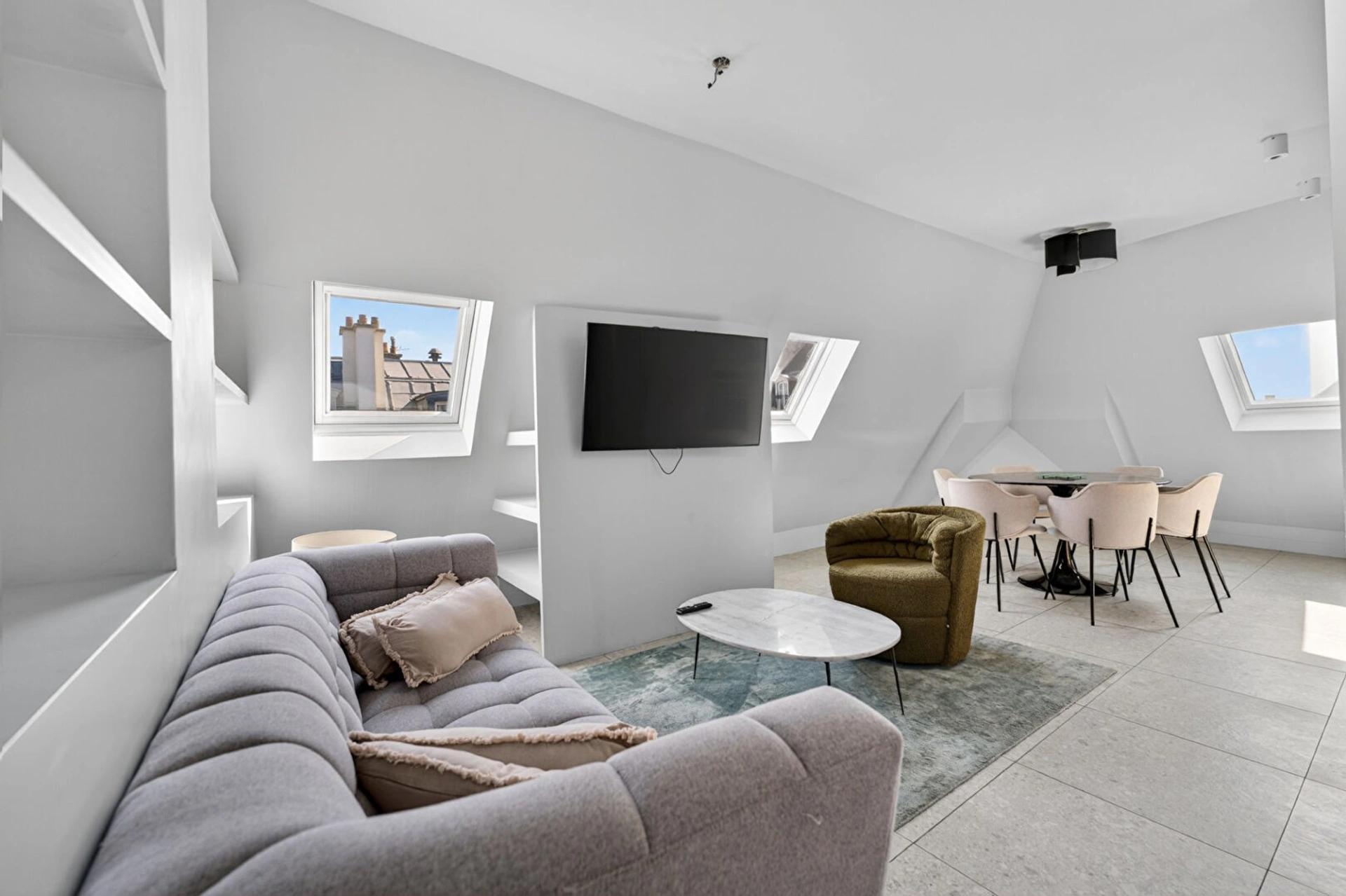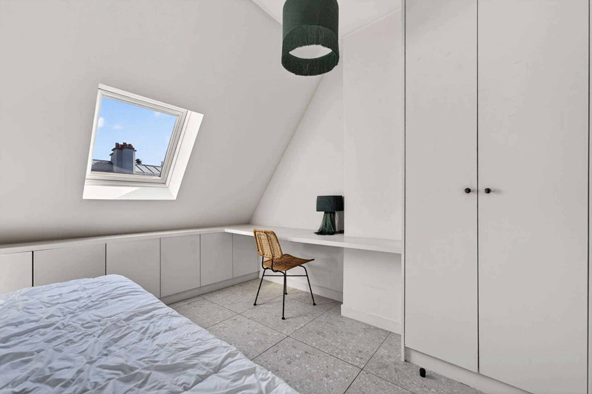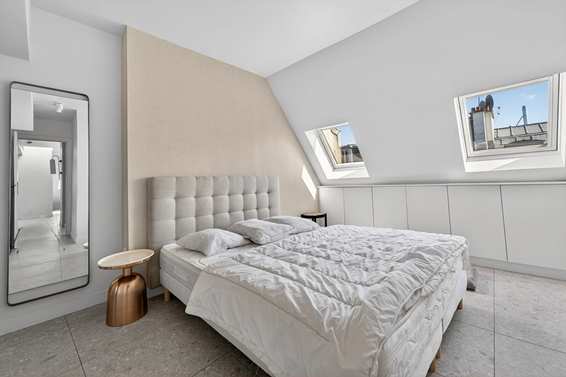 Situé au coeur du quartier Saint-Vincent-de-Paul, rue de Rocroy, dans le 10eme arrondissement de Paris, cet appartement de 57 m² se trouve au sixième et dernier étage d'un bel immeuble haussmannien.