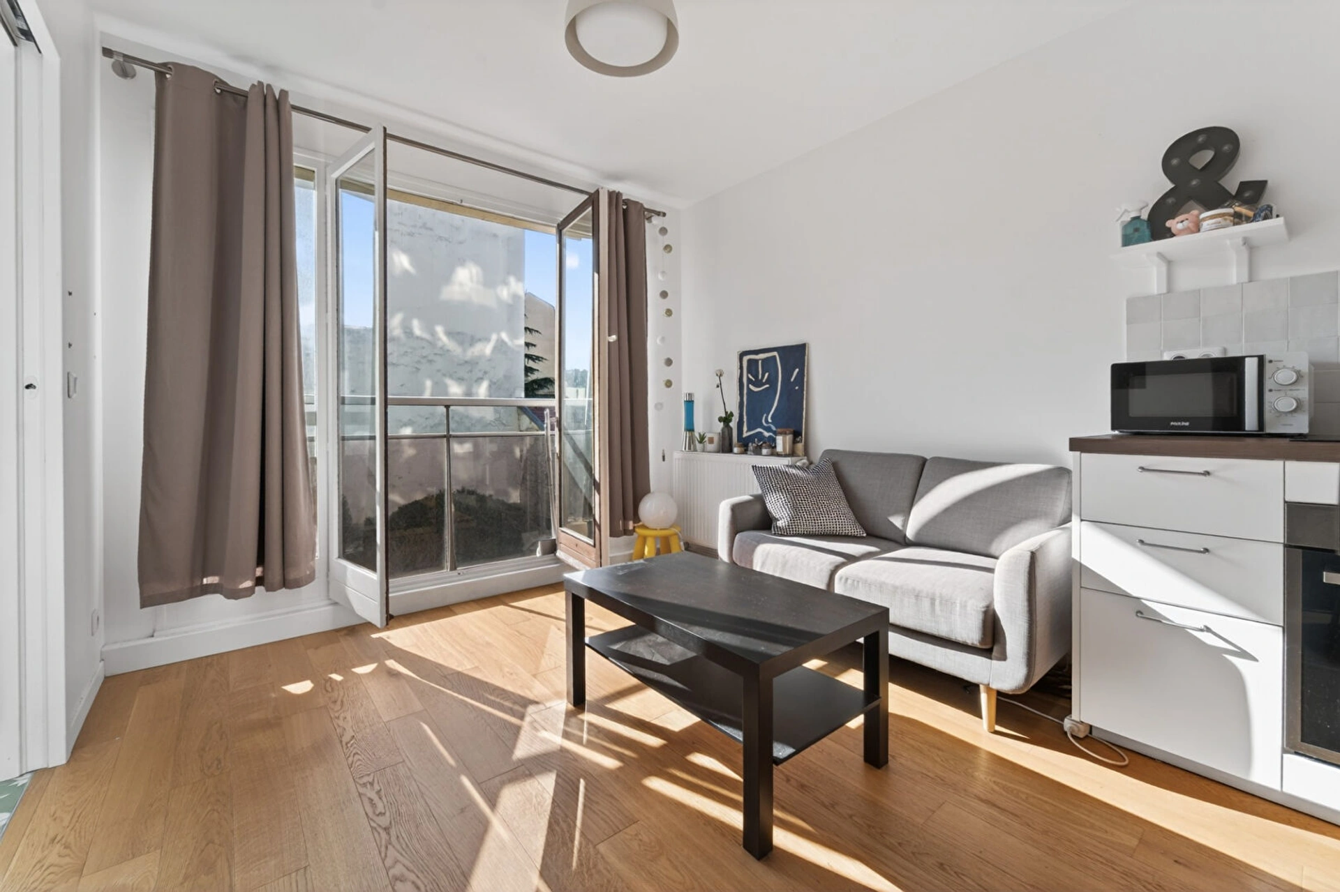 L'appartement se compose d'un séjour avec cuisine ouverte américaine entièrement équipée, d'une chambre confortable, ainsi que d'une salle d'eau avec WC.