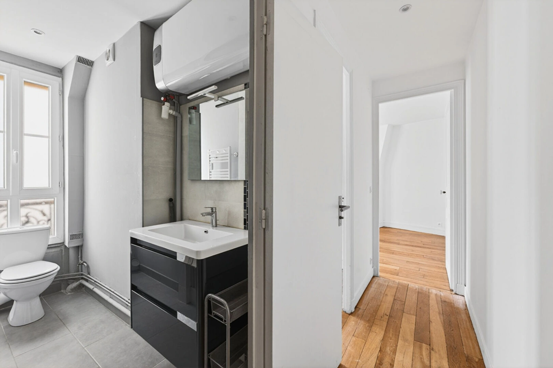 Composé d'un lumineux séjour offrant une vue dégagée, d'une cuisine dînatoire, d'une grande chambre et d'un bureau (ou 2nde petite chambre) toutes deux exposées Est, sur cour, vous apprécierez également la salle d'eau avec WC et fenêtre.