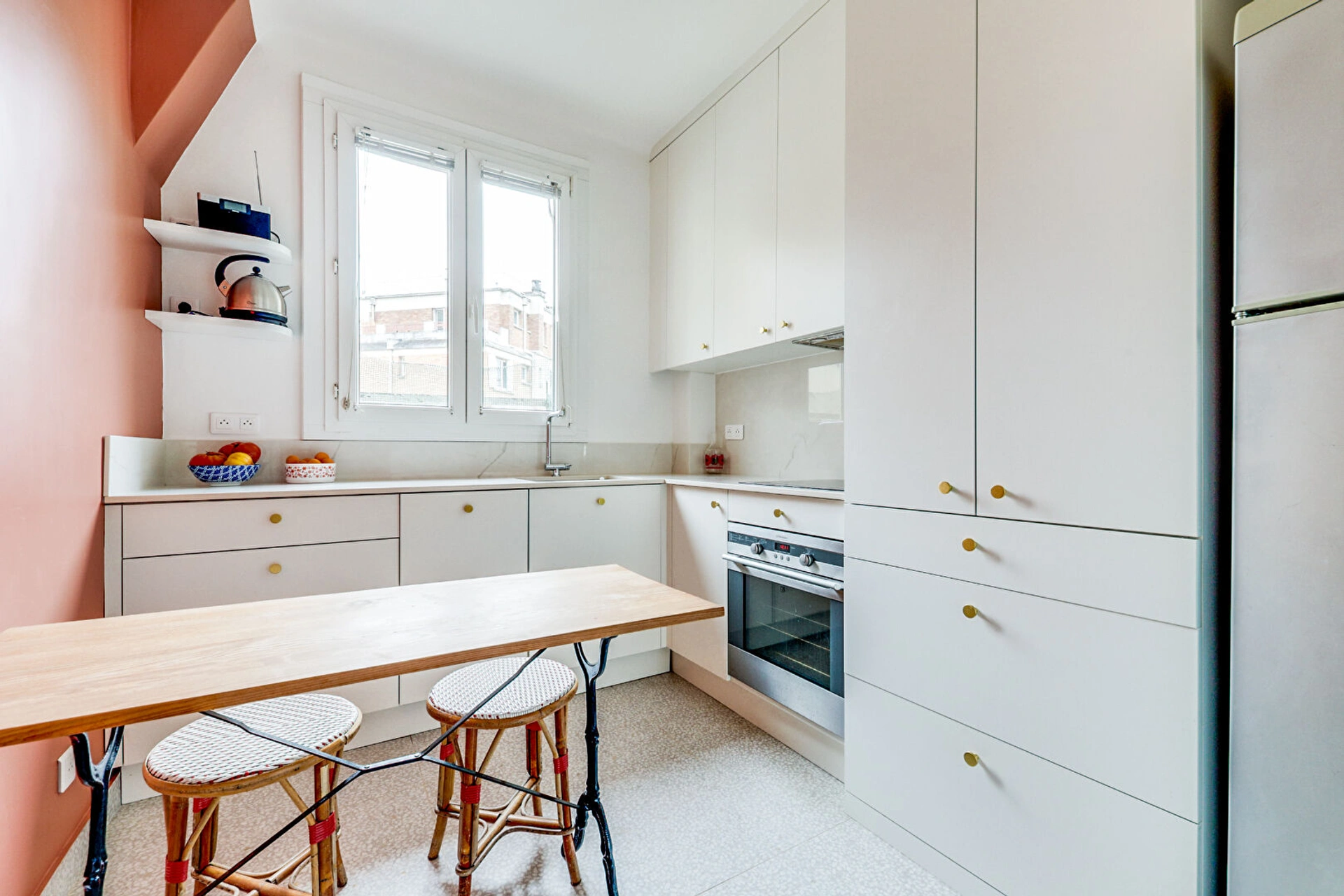 Votre agence FREDELION PARIS 14 ALESIA vous propose, rue Gustave Le Bon un très bel appartement de 86m² situé au 5ème étage avec ascenseur d'un immeuble de 1933.