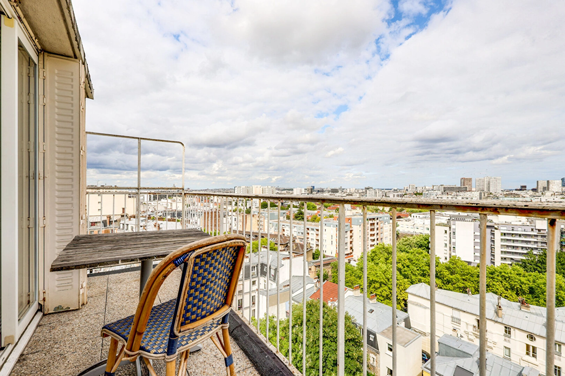 Ce studio, avec VUE PANORAMIQUE sur tout Paris, se compose d'une entrée, d'une pièce à vivre donnant sur un balcon de 5m2 avec vue sur Paris + banlieue Sud avec cuisine ouverte et d'une salle de bains avec WC intégrés.