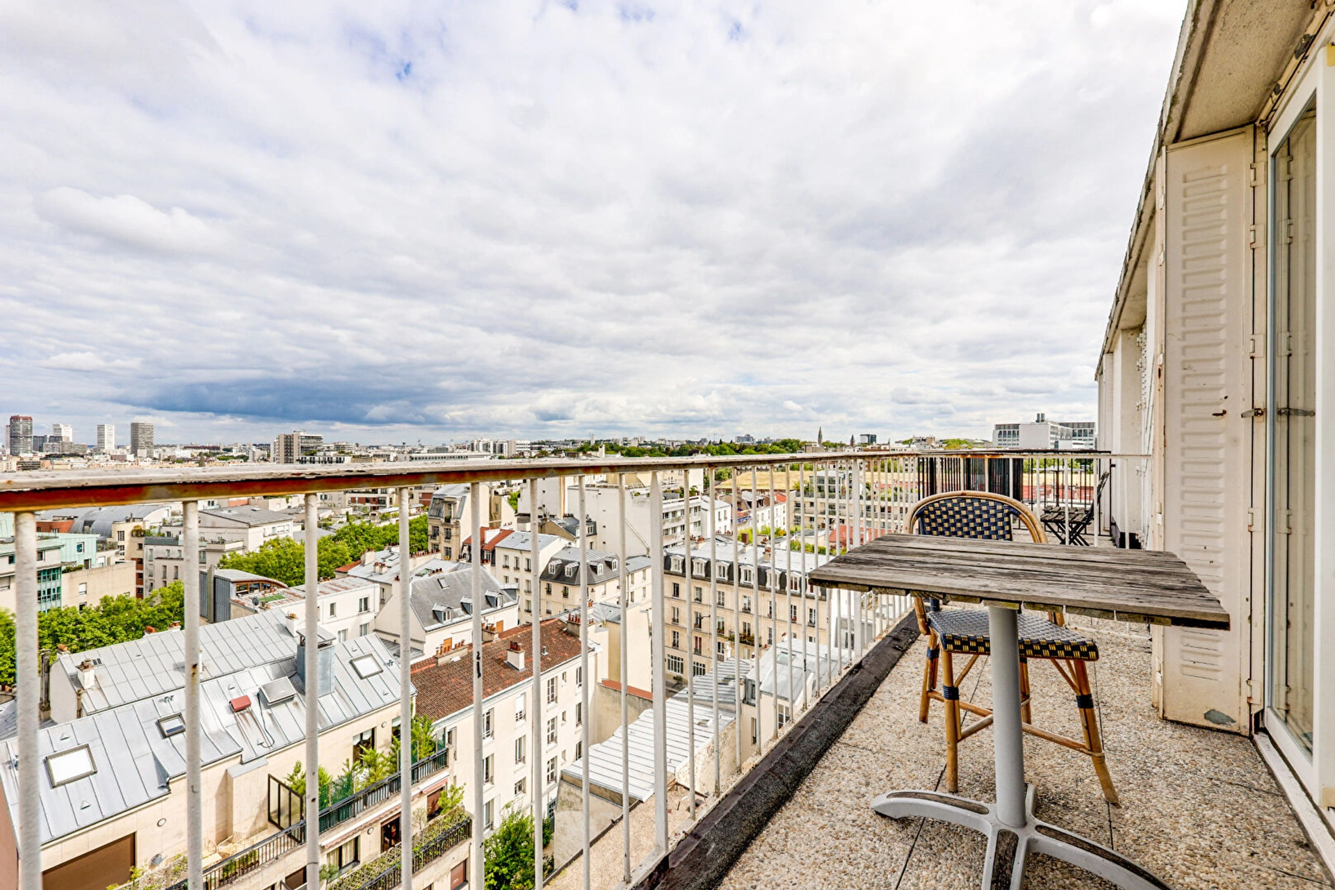 Ce studio, avec VUE PANORAMIQUE sur tout Paris, se compose d'une entrée, d'une pièce à vivre donnant sur un balcon de 5m2 avec vue sur Paris + banlieue Sud avec cuisine ouverte et d'une salle de bains avec WC intégrés.