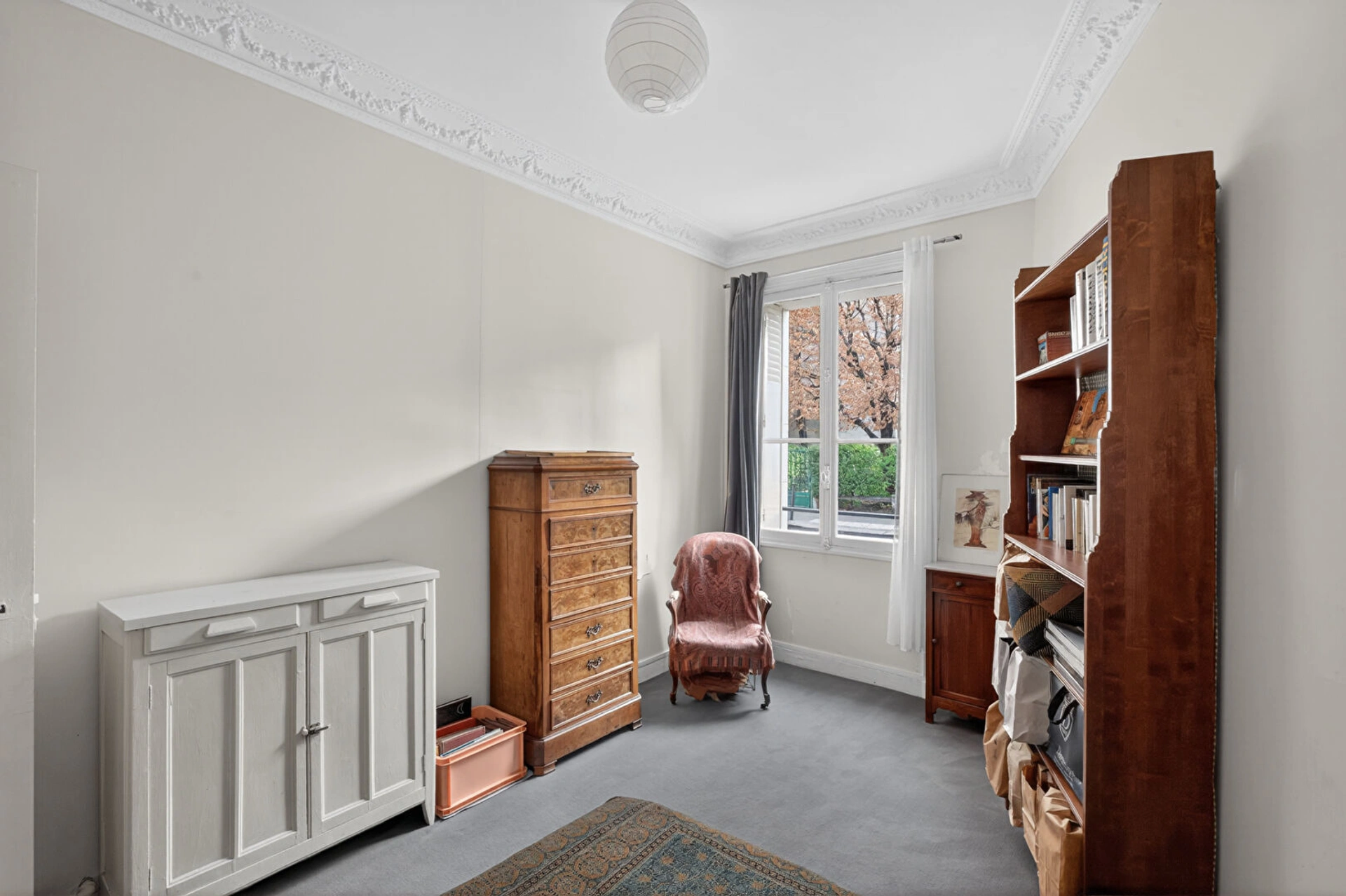 Cet appartement calme et lumineux, se compose d'une entrée, d'un séjour avec de magnifiques moulures, d'une chambre, d'une cuisine indépendante donnant sur cour, d'une salle de bains et d'un WC.
