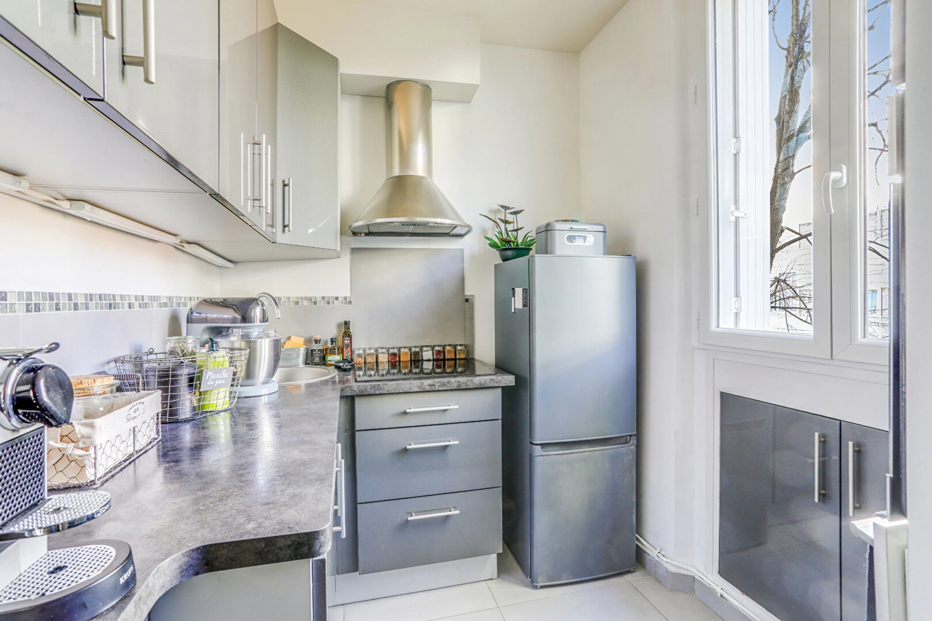 Idéalement situé, à proximité des transports et des commerces, cet appartement bénéficie d'un cadre de vie pratique et agréable. Il est au calme et bénéficie d'une double exposition : sur cour côté séjour et sur un espace vert côté cuisine, offrant ainsi une vue dégagée et apaisante.