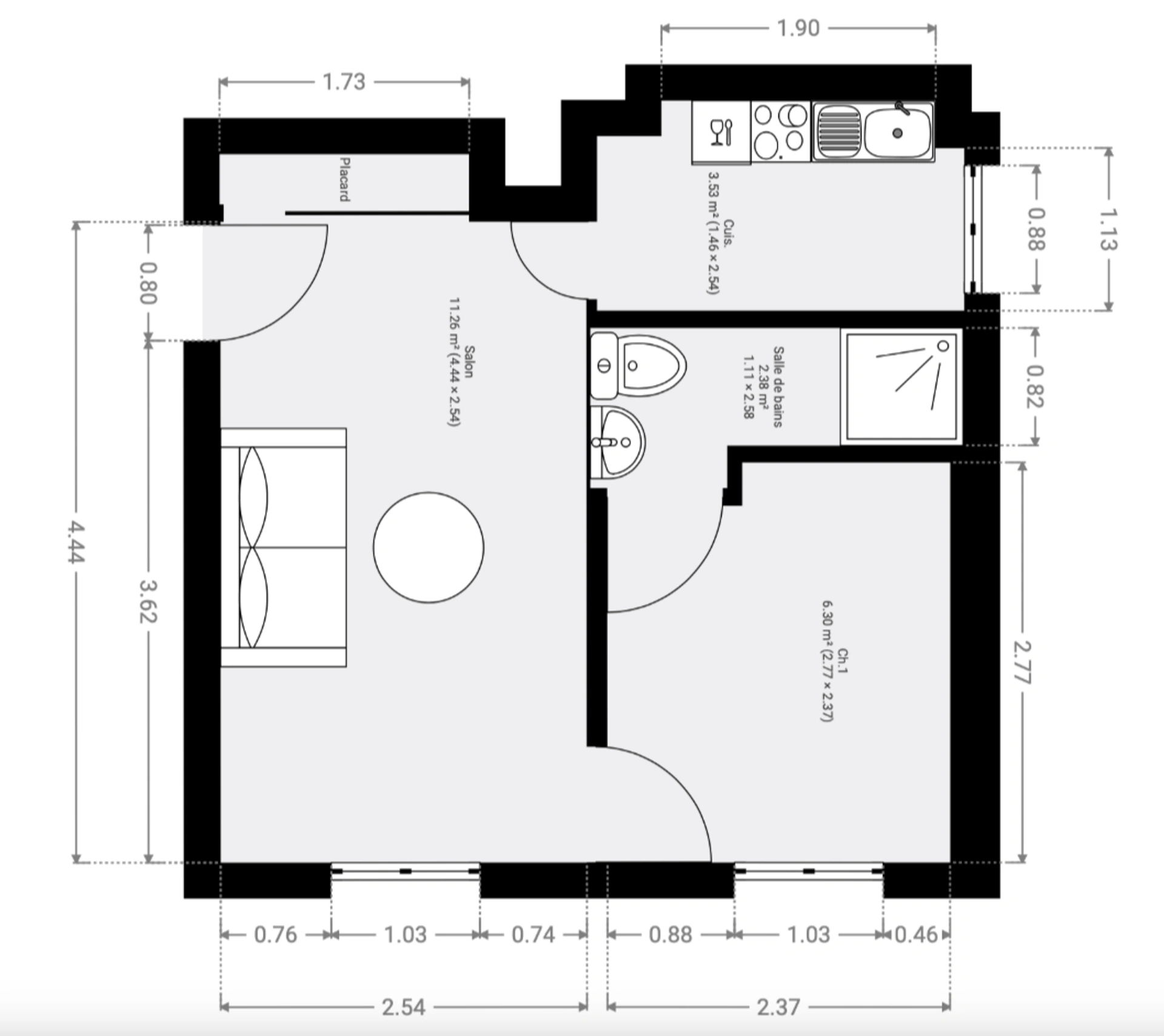 Au 3ème et dernier étage sans ascenseur, ce bien sans perte de place est composé d'un séjour, une cuisine séparée, une chambre avec sa salle d'eau et wc (sanibroyeur correctement raccordé avec les autorisations de la copropriété)