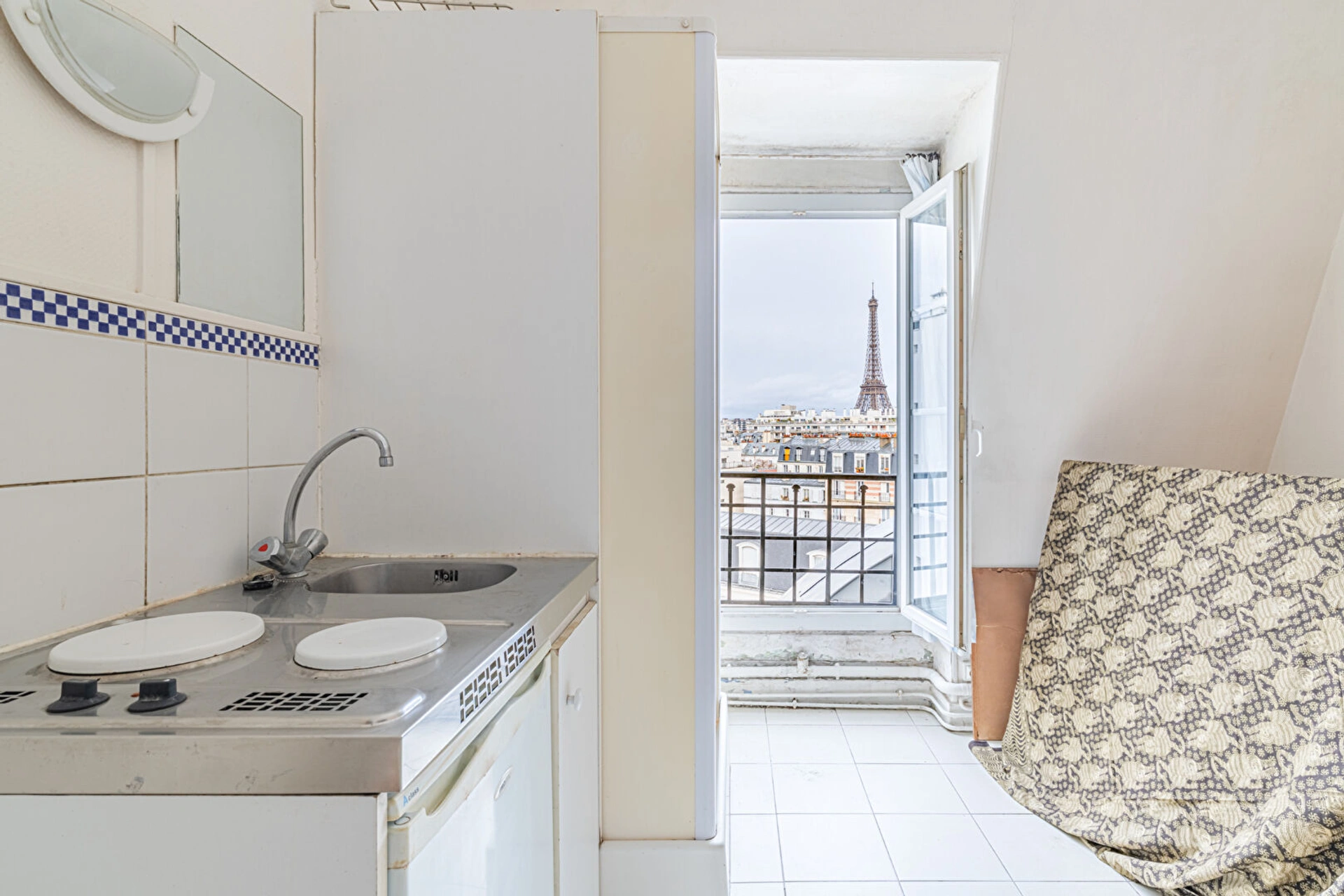 L'appartement se compose d'une vaste entrée avec de nombreux rangements, d'un séjour lumineux offrant une vue dégagée sur la Tour Eiffel, d'une superbe salle à manger d'angle, d'une cuisine dînatoire séparée, aménagée et entièrement équipée, ainsi que d'une pièce actuellement utilisée comme bureau, pouvant aisément être transformée en chambre.