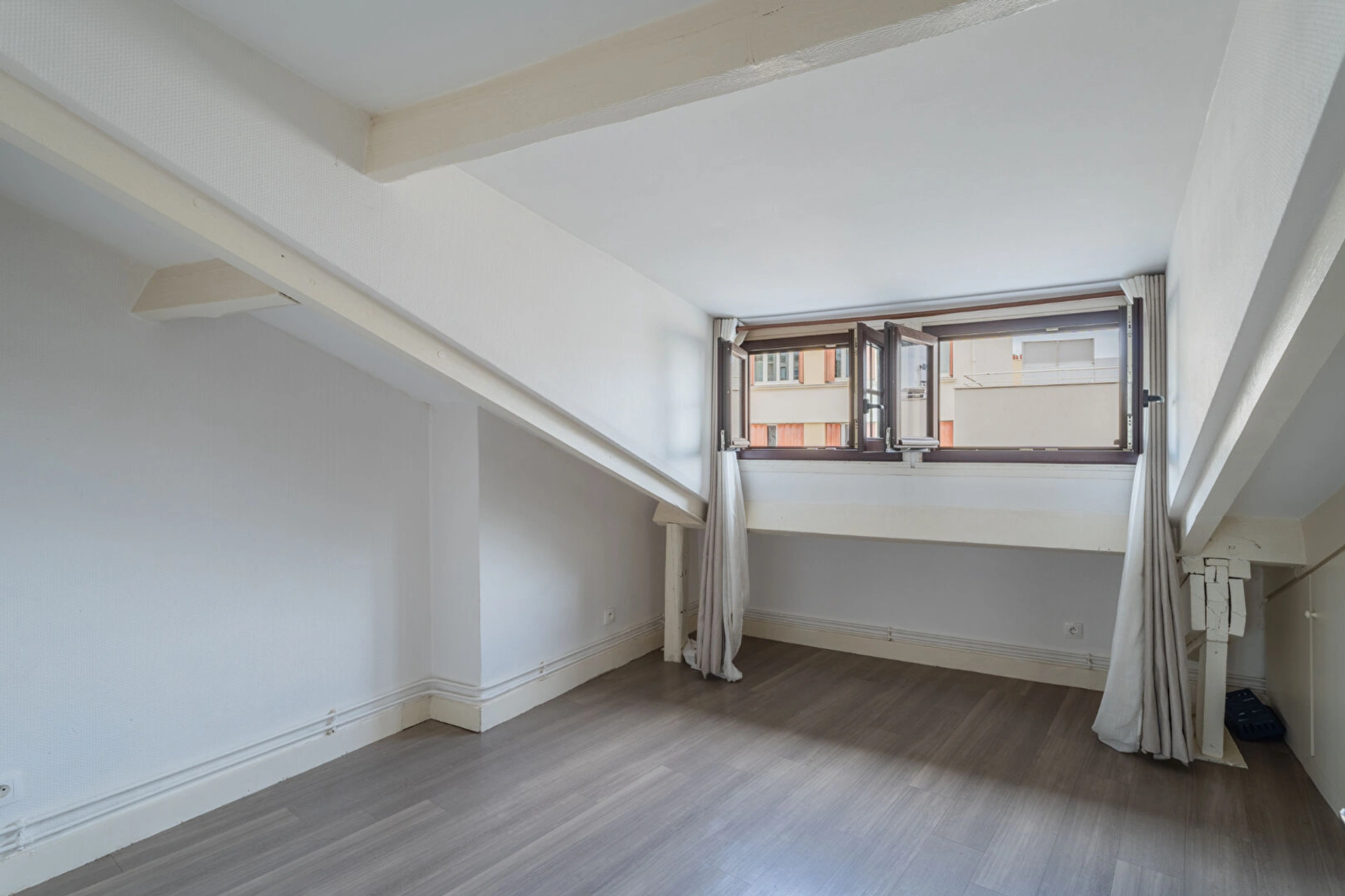 Idéal pour une résidence principale, un investissement locatif ou un pied-à-terre parisien, ce 2 pièces de 38 m² carrez (51 m² au sol) se situe au 6ème et dernier étage avec ascenseur d'un immeuble ancien de bon standing. Au calme, lumineux et bénéficiant d'une vue dégagée, il séduit également par son charme authentique avec ses poutres apparentes.