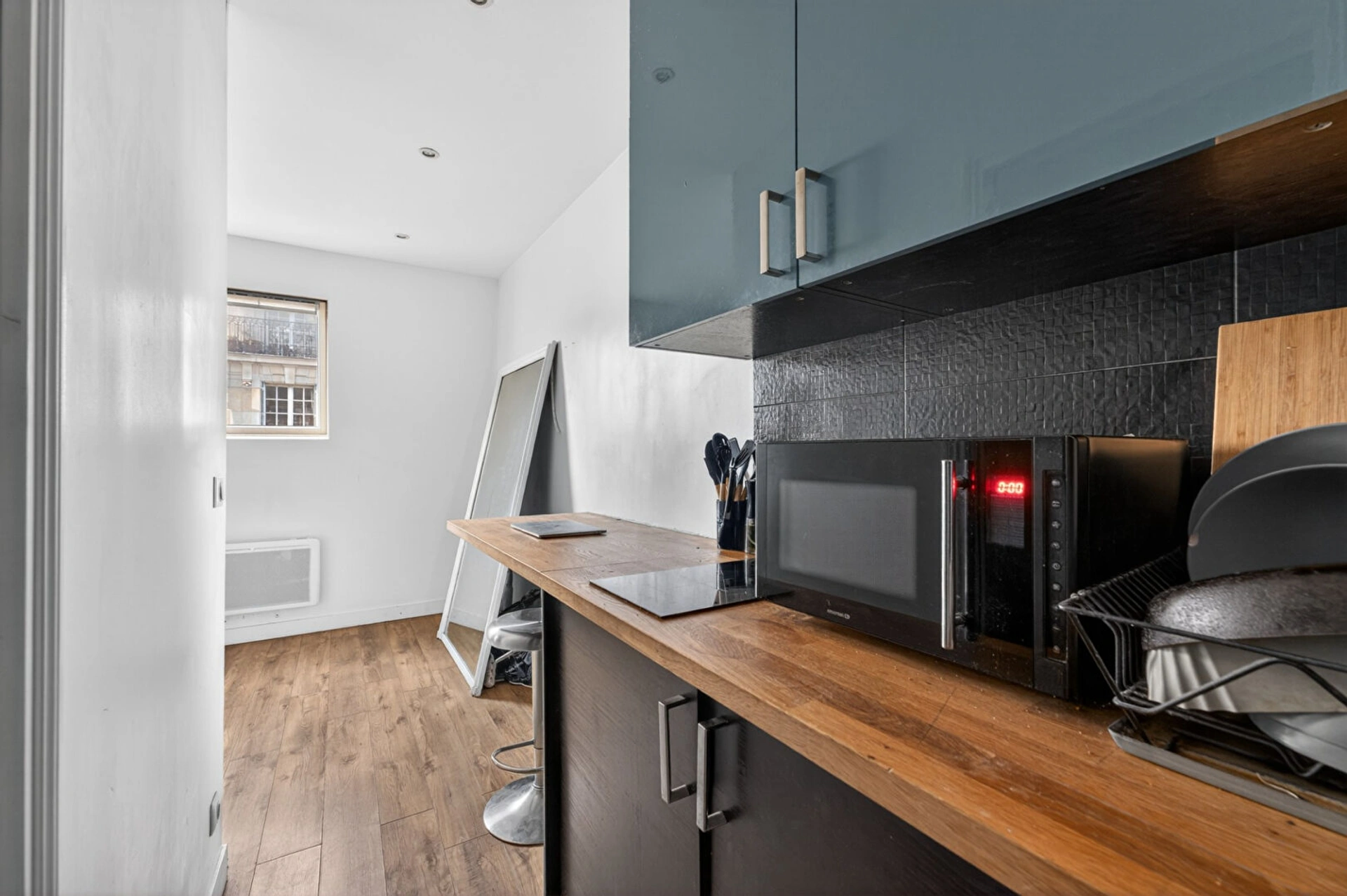 Composé d'une belle pièce de vie en L de 18 m², avec cuisine équipée (dont machine à laver), d'une chambre avec verrière et d'une salle d'eau avec WC, il offre un cadre de vie agréable au coeur d'un environnement de qualité au sein du très recherché XVIe arrondissement. (6.40 % honoraires TTC à la charge de l'acquéreur.)