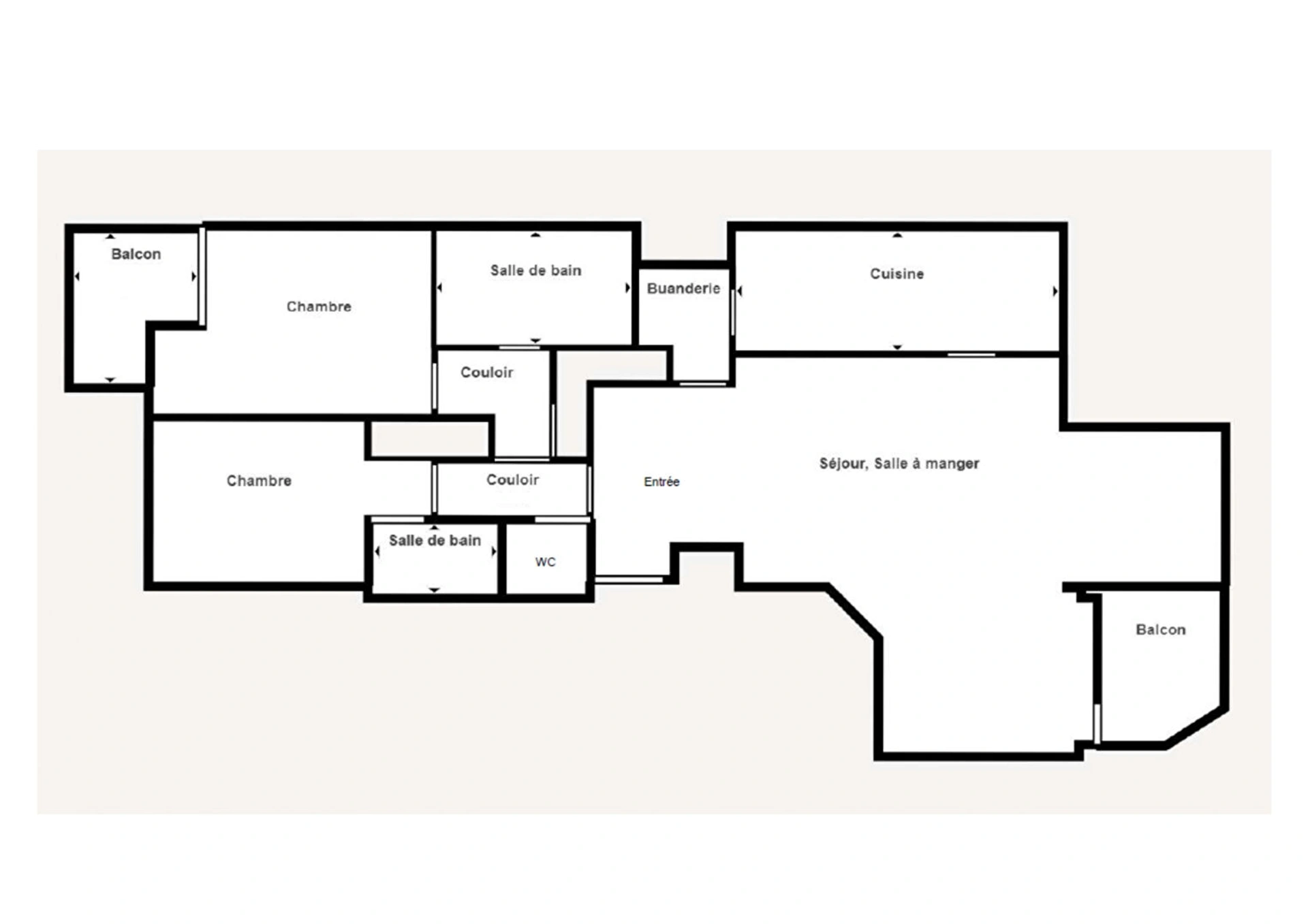 D'une surface de 96,81, il comprend une entrée avec placards, un grand séjour/salle à manger, un bow-window ouvrant sur la terrasse, une cuisine indépendante avec office deux deux chambres dont une avec une salle d'eau et l'autre se prolongeant par une terrasse, une salle de bains avec toilettes et des WC invités. Une cave.