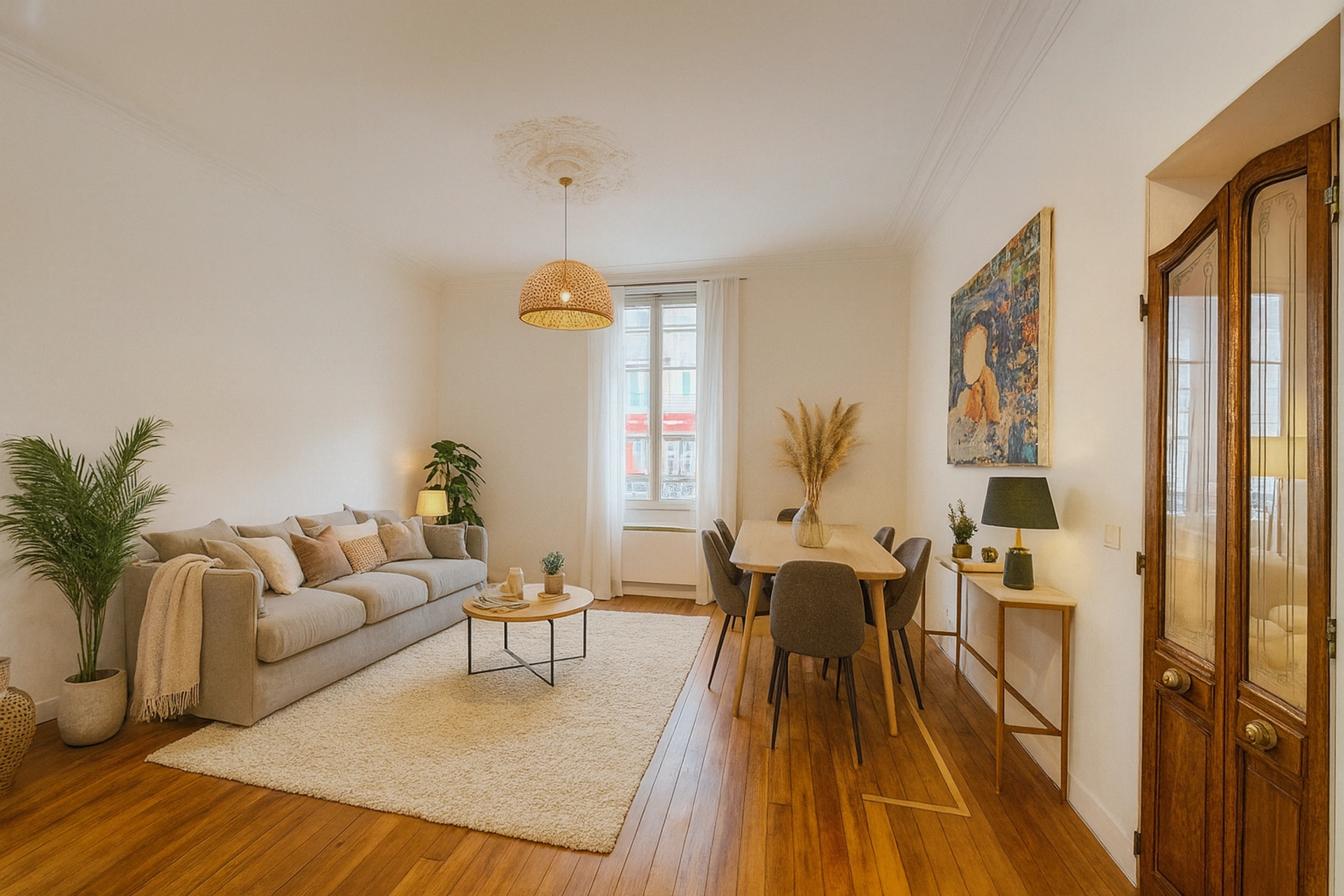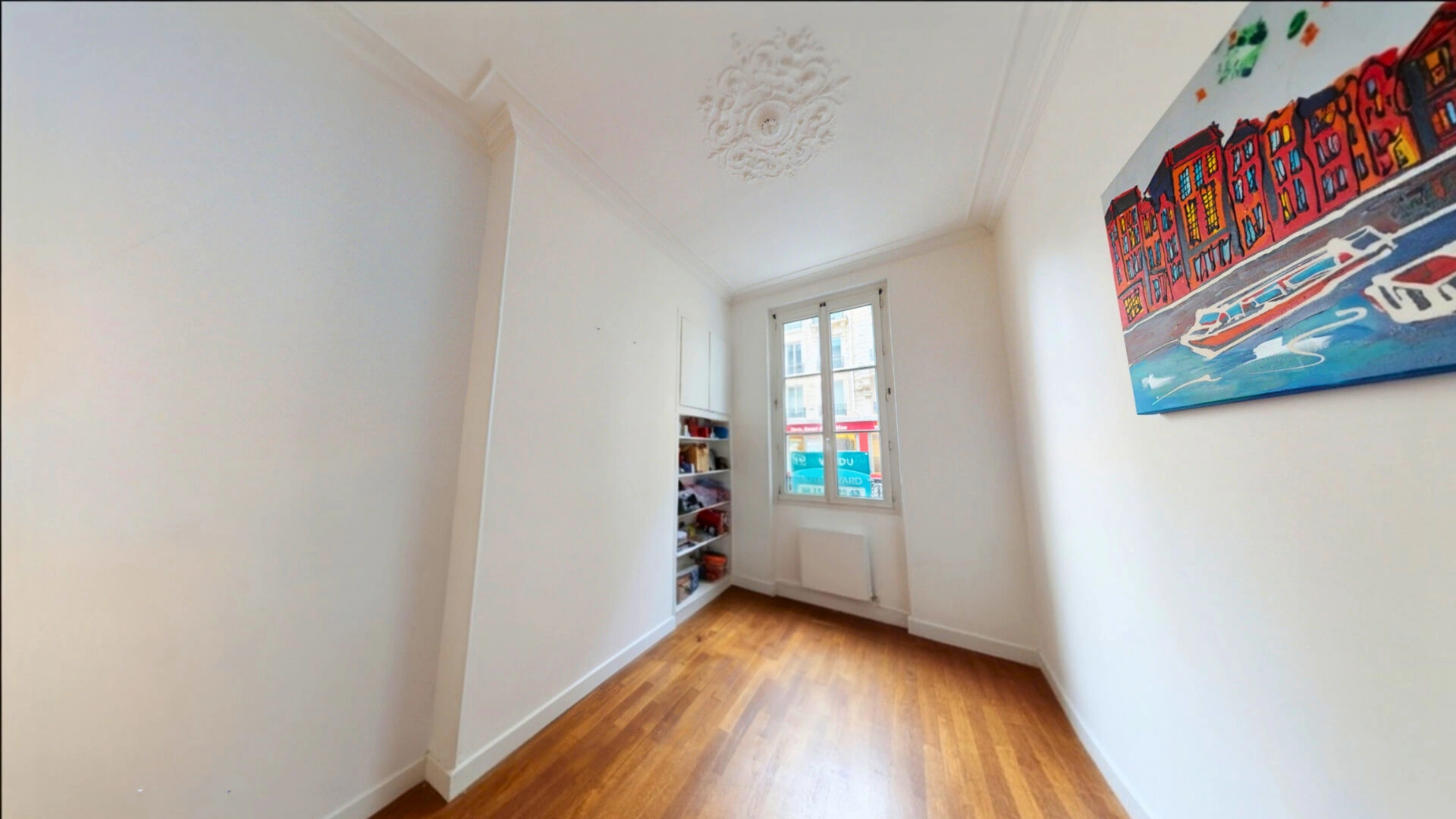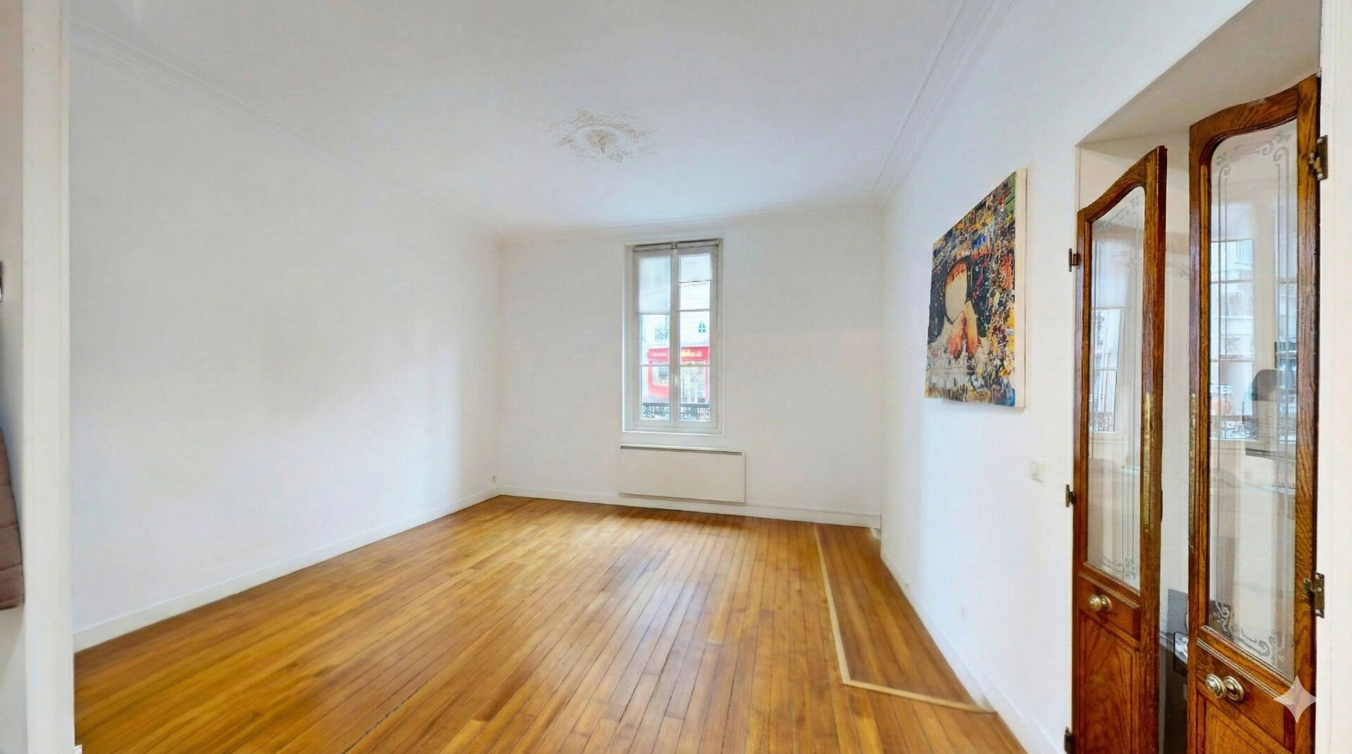 Charme de l'ancien : hauteur sous plafond, moulures et parquet d'origine dans la pièce principale. En bon état, double vitrage de qualité dans toutes les pièces.