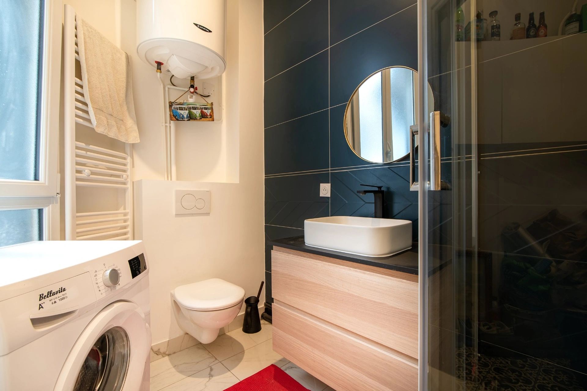 Le bien se compose d'une entrée avec rangements, une salle de douche avec fenêtre et WC intégrés, un dégagement qui dessert une cuisine en angle ouverte sur une magnifique pièce de vie volumineuse, et une chambre au calme absolu.
