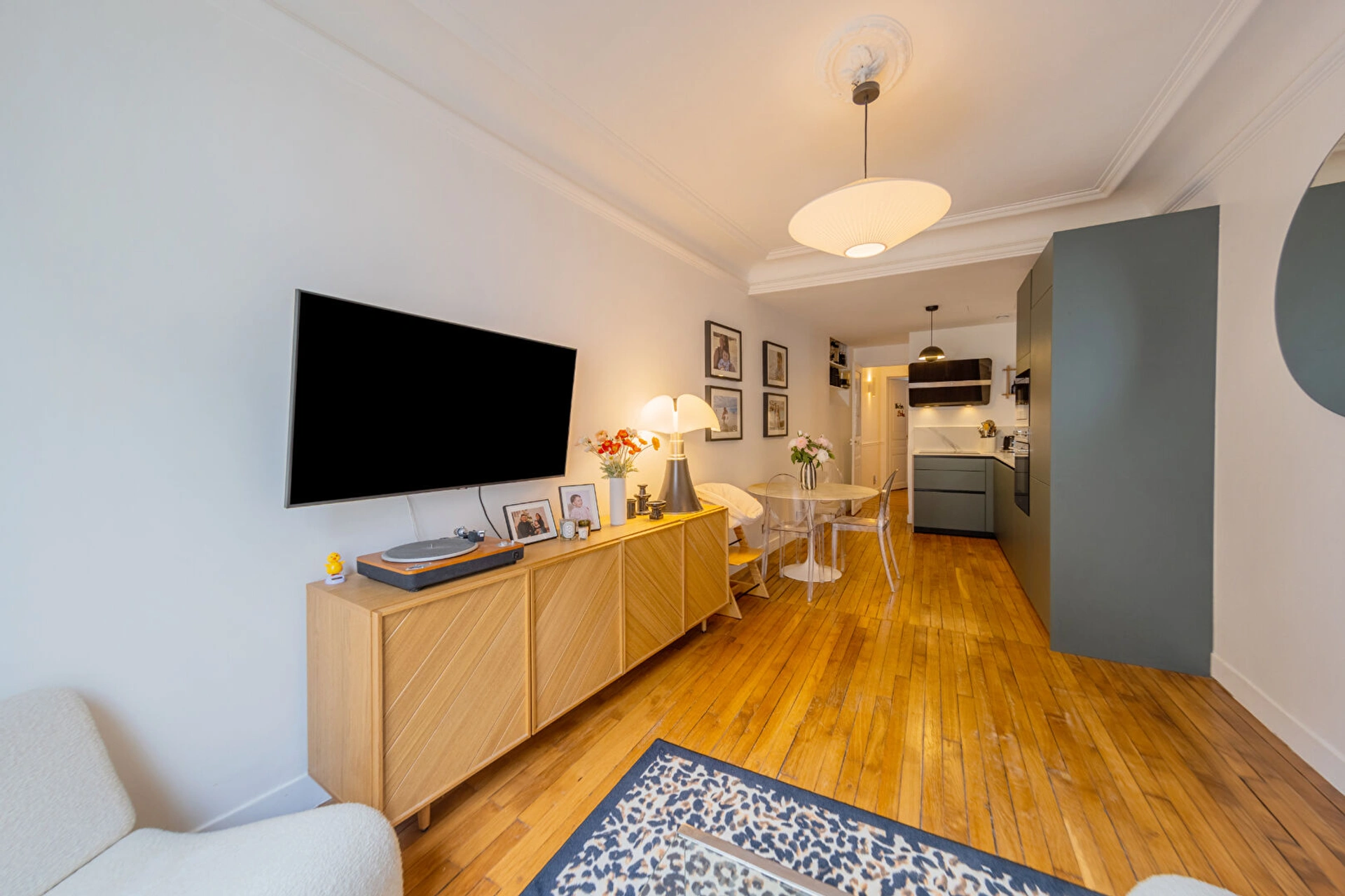 Cet appartement lumineux se compose d'un séjour avec cuisine ouverte. L'espace nuit comprend deux chambres orientées sur cour, au calme et une salle d'eau avec WC.