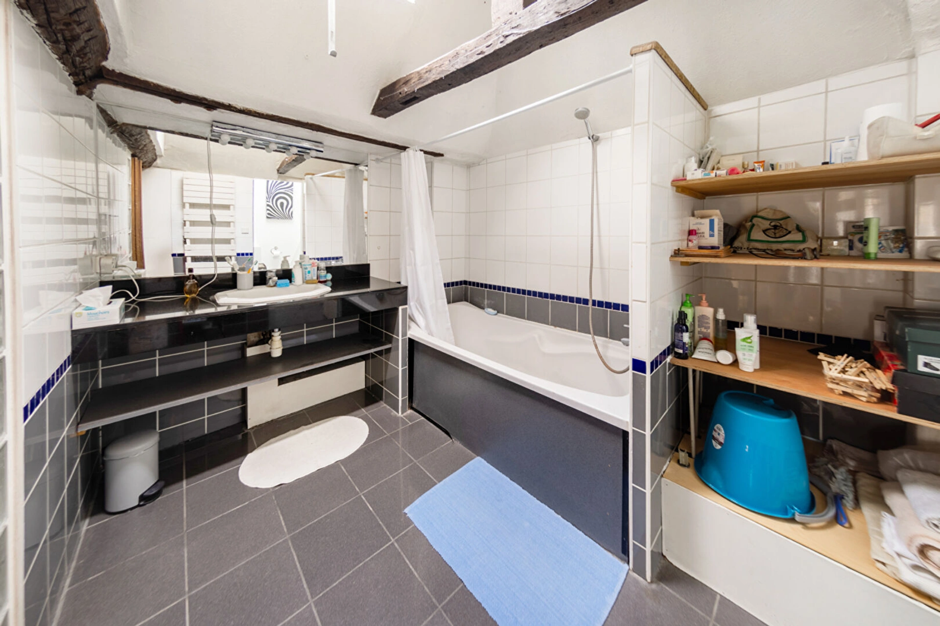 Ce bien possède une hauteur sous plafond de 5,15 m2 sur une partie du séjour, des poutres d'origine et beaucoup de charme.