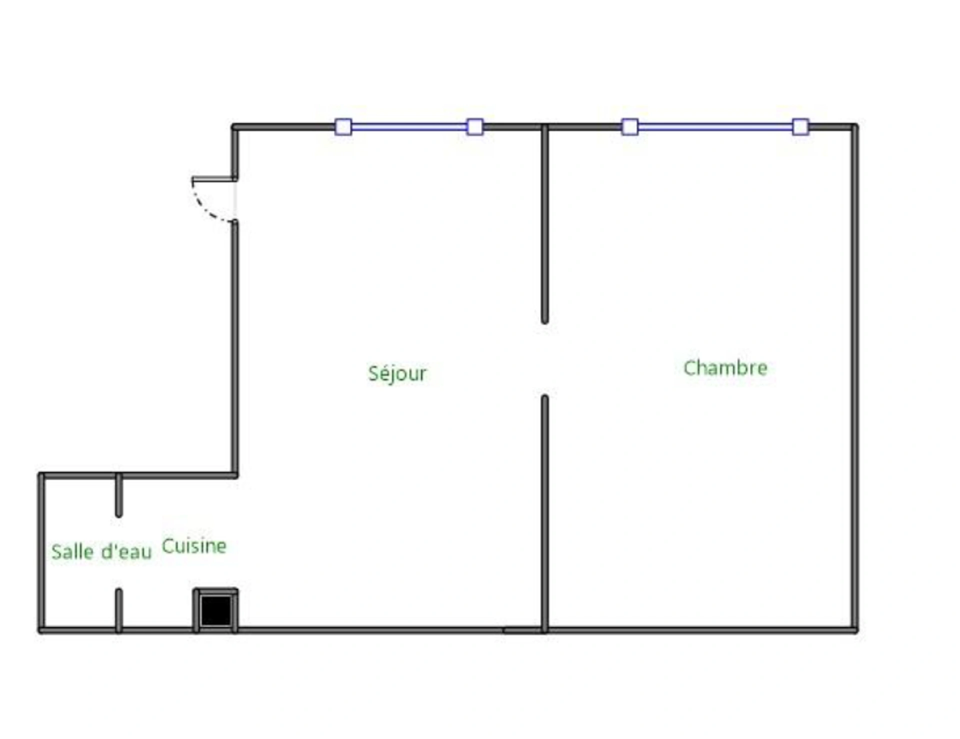 Possibilité également de prévoir un toilette dans l'appartement et de faire une cuisine ouverte sur séjour.