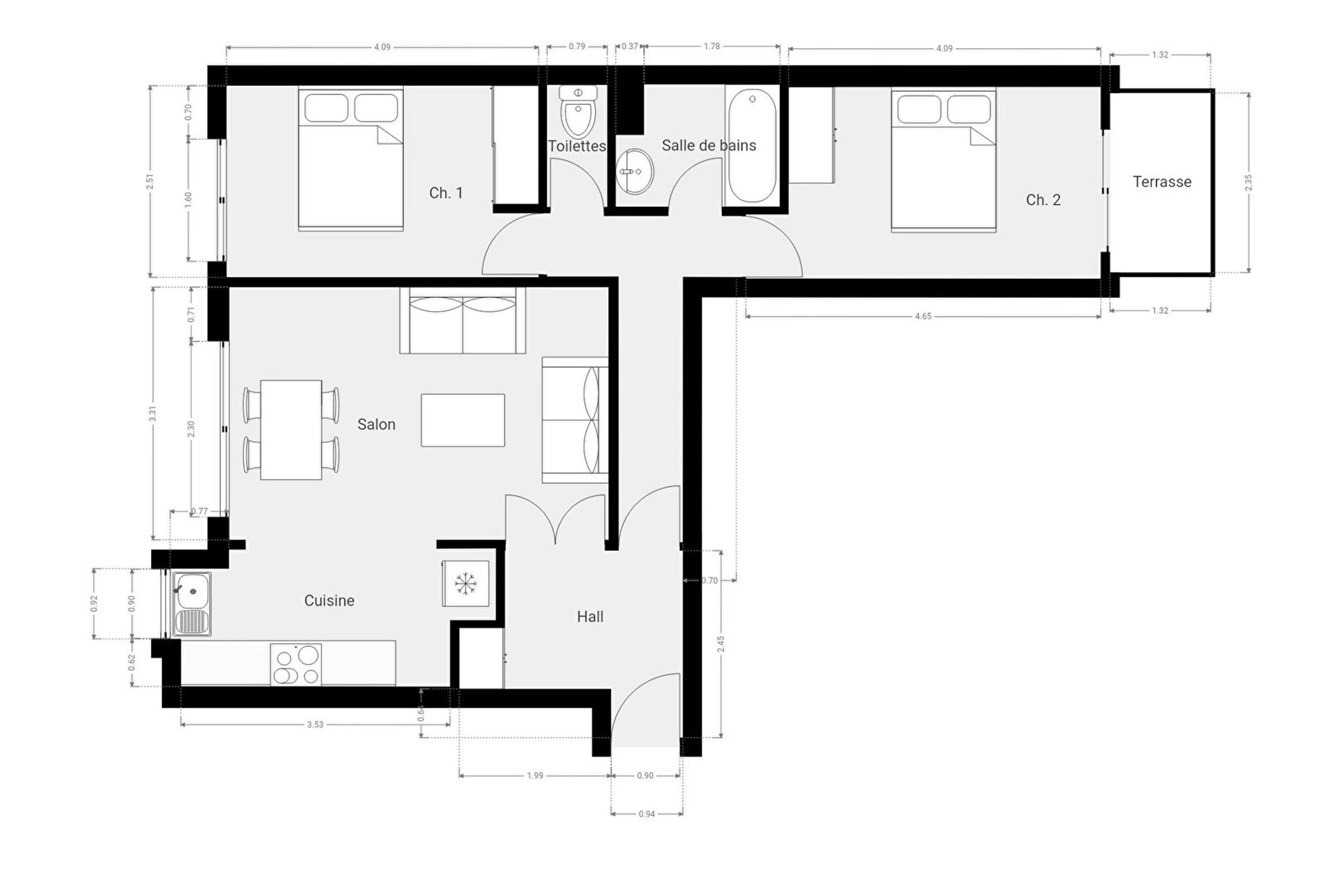 2 chambre(s)