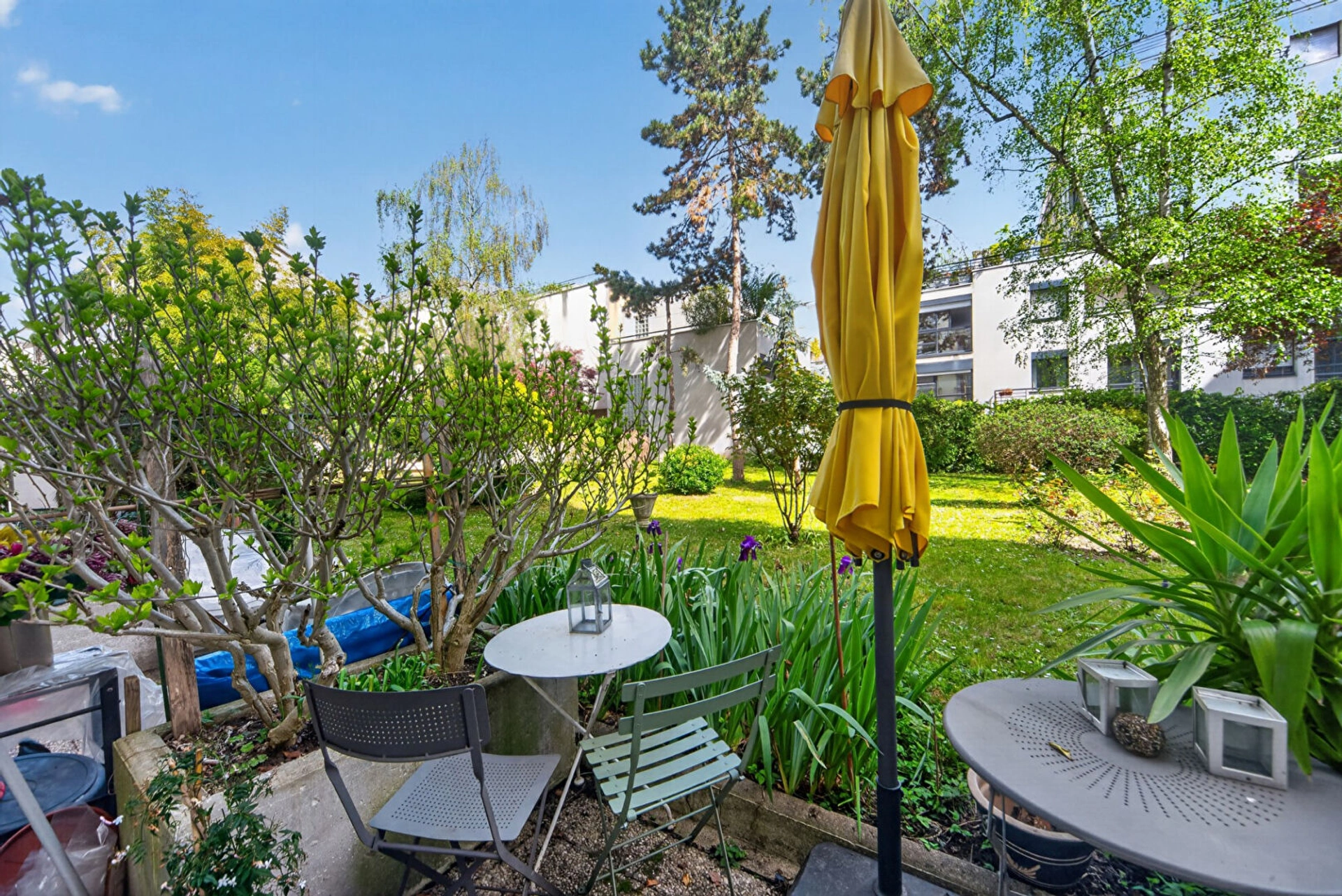 Côté nuit, vous trouverez deux chambres, dont une bénéficiant d'une terrasse privative de 3,66 m², donnant sur le jardin arboré et soigneusement entretenu de la copropriété, un véritable havre de paix en ville. Ainsi qu'une salle de bains et des WC indépendants.