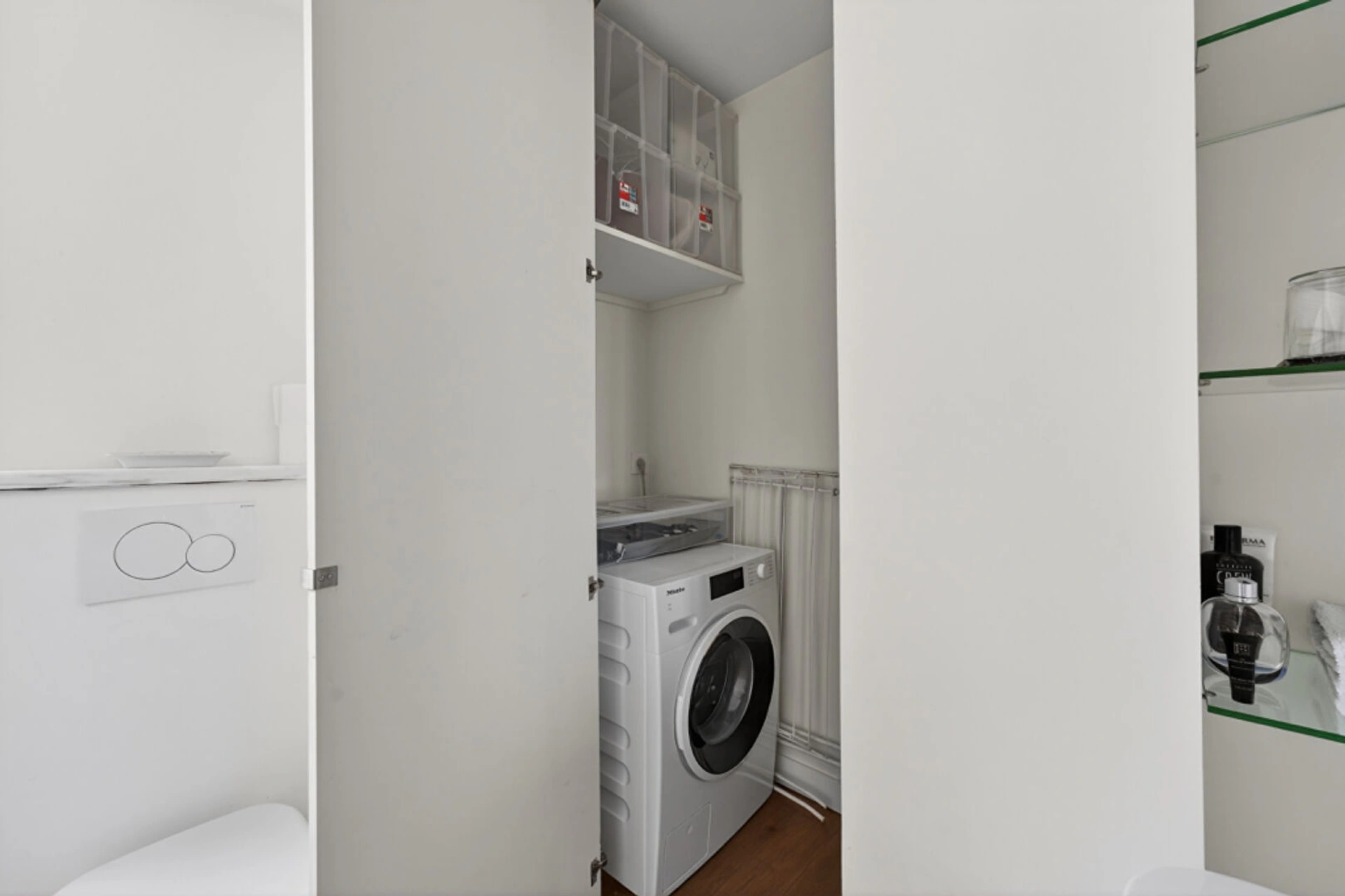 Salle d'eau avec WC, buanderie séparée : un vrai confort au quotidien, rare pour un studio.