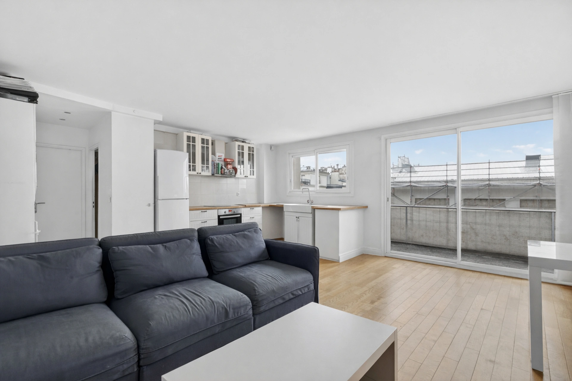 Situé au 4ème étage, l'appartement donne sur une cour dégagée, offrant un environnement calme et agréable. Le séjour, d'une superficie d'environ 30 m², constitue un espace de vie confortable et lumineux.