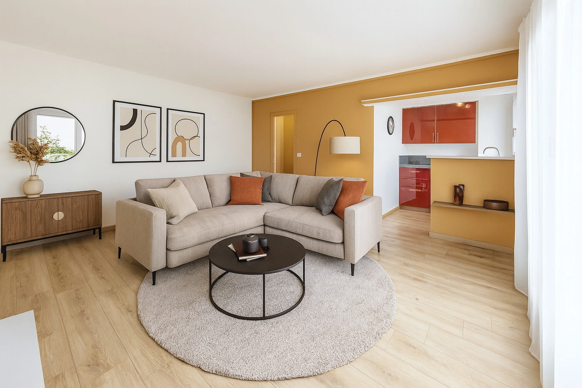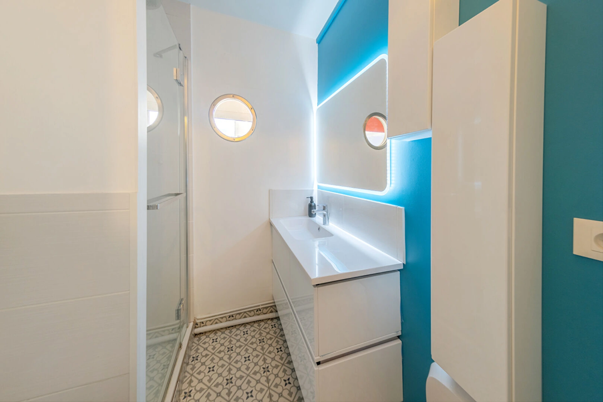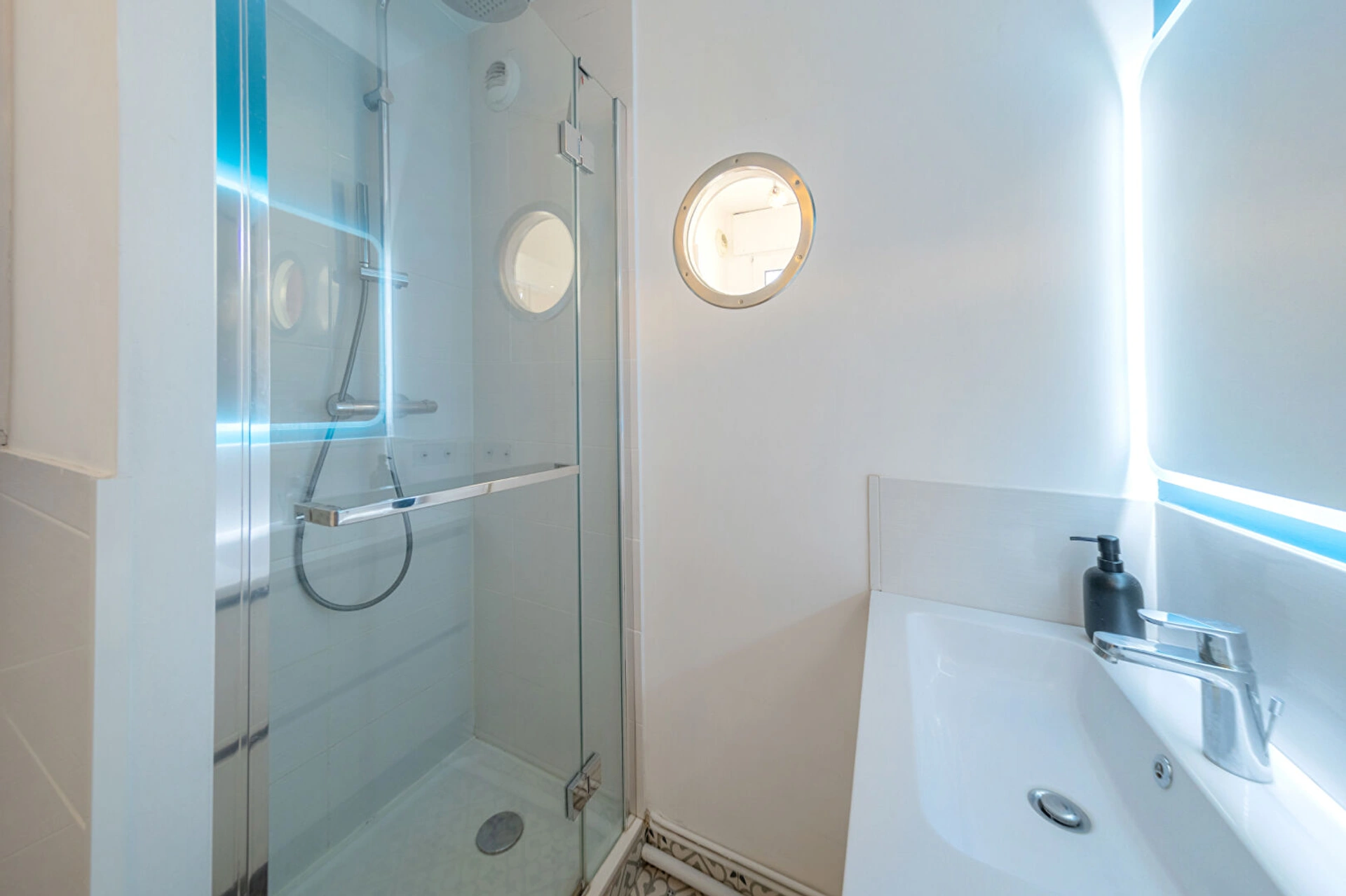 Il se compose d'une entrée avec placard, d'un séjour avec cuisine ouverte et équipée, d'une salle d'eau avec WC, ainsi que d'un agréable petit extérieur. L'appartement a été entièrement rénové avec soin.