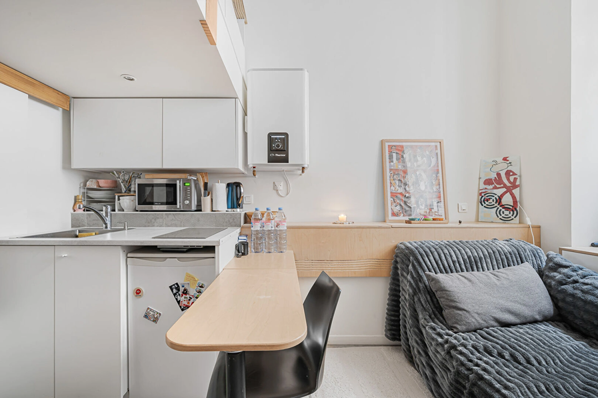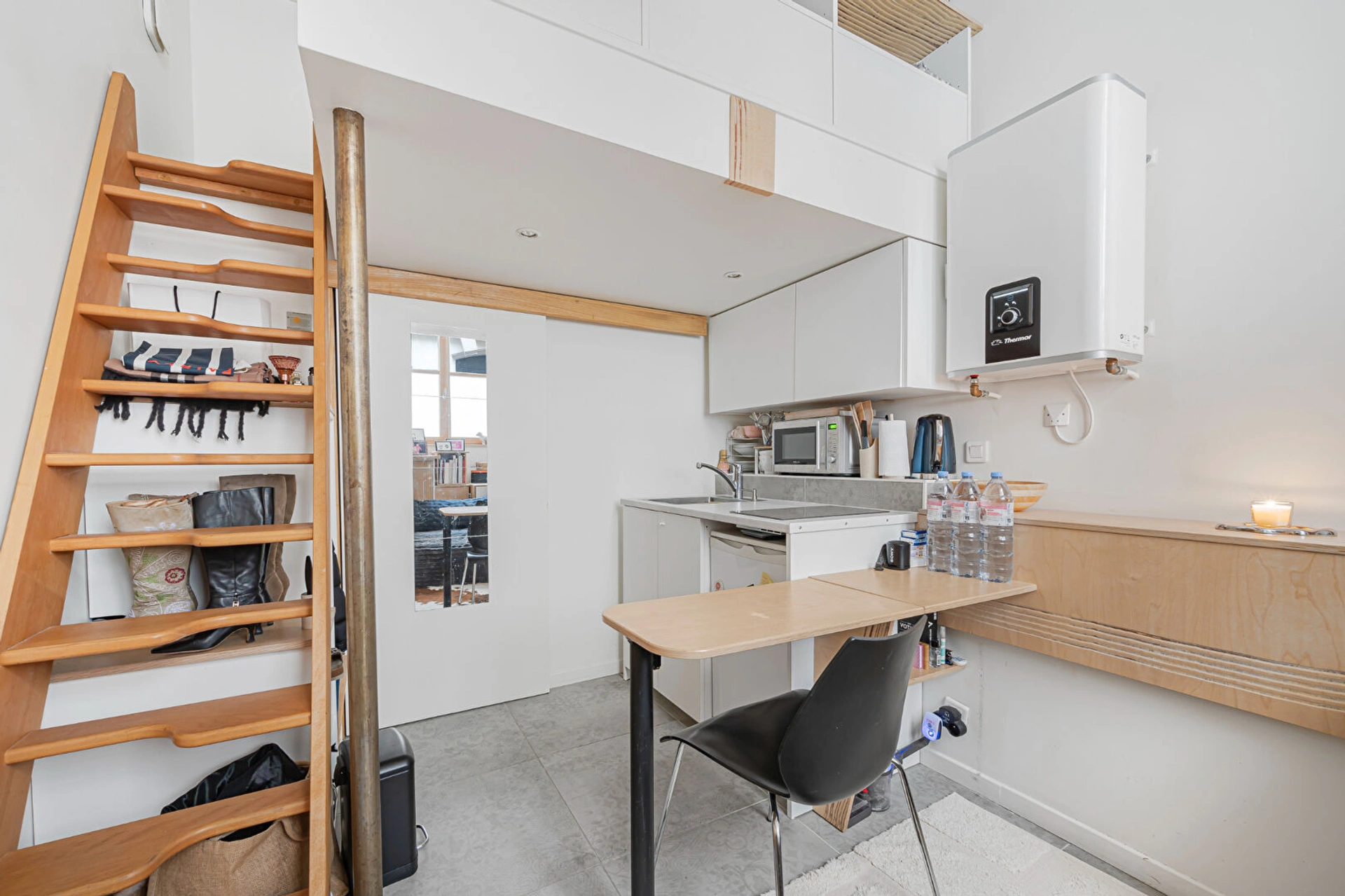 Venez découvrir ce studio sur rue, entièrement rénové par architecte. Bénéficiant d'une belle hauteur sous plafond de 3,50 m, il offre une optimisation de l'espace avec une pièce de vie, une cuisine équipée, une salle d'eau avec WC, ainsi qu'un coin nuit en mezzanine.