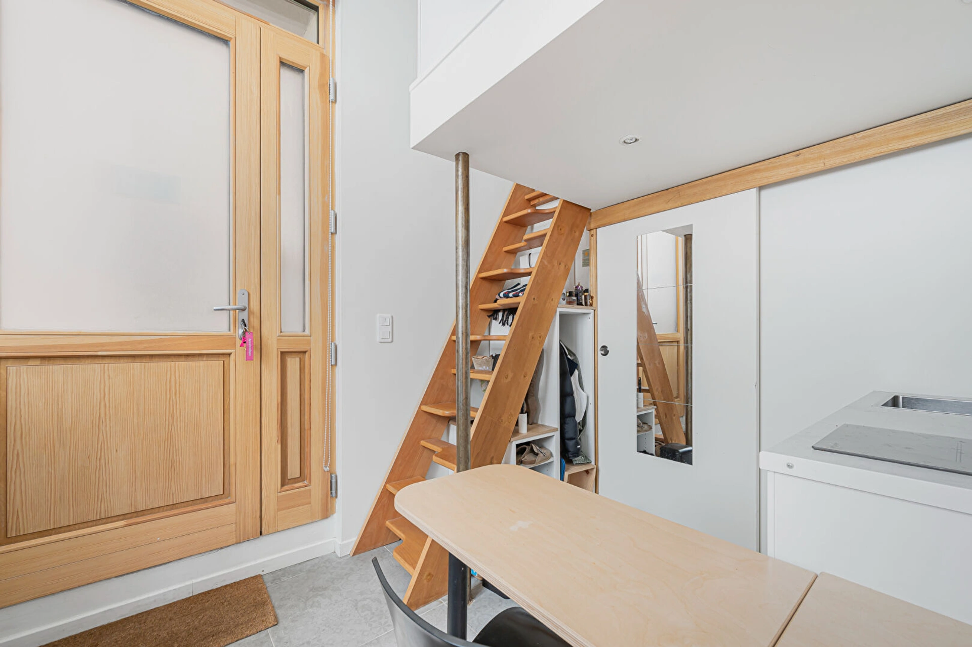 Venez découvrir ce studio sur rue, entièrement rénové par architecte. Bénéficiant d'une belle hauteur sous plafond de 3,50 m, il offre une optimisation de l'espace avec une pièce de vie, une cuisine équipée, une salle d'eau avec WC, ainsi qu'un coin nuit en mezzanine.
