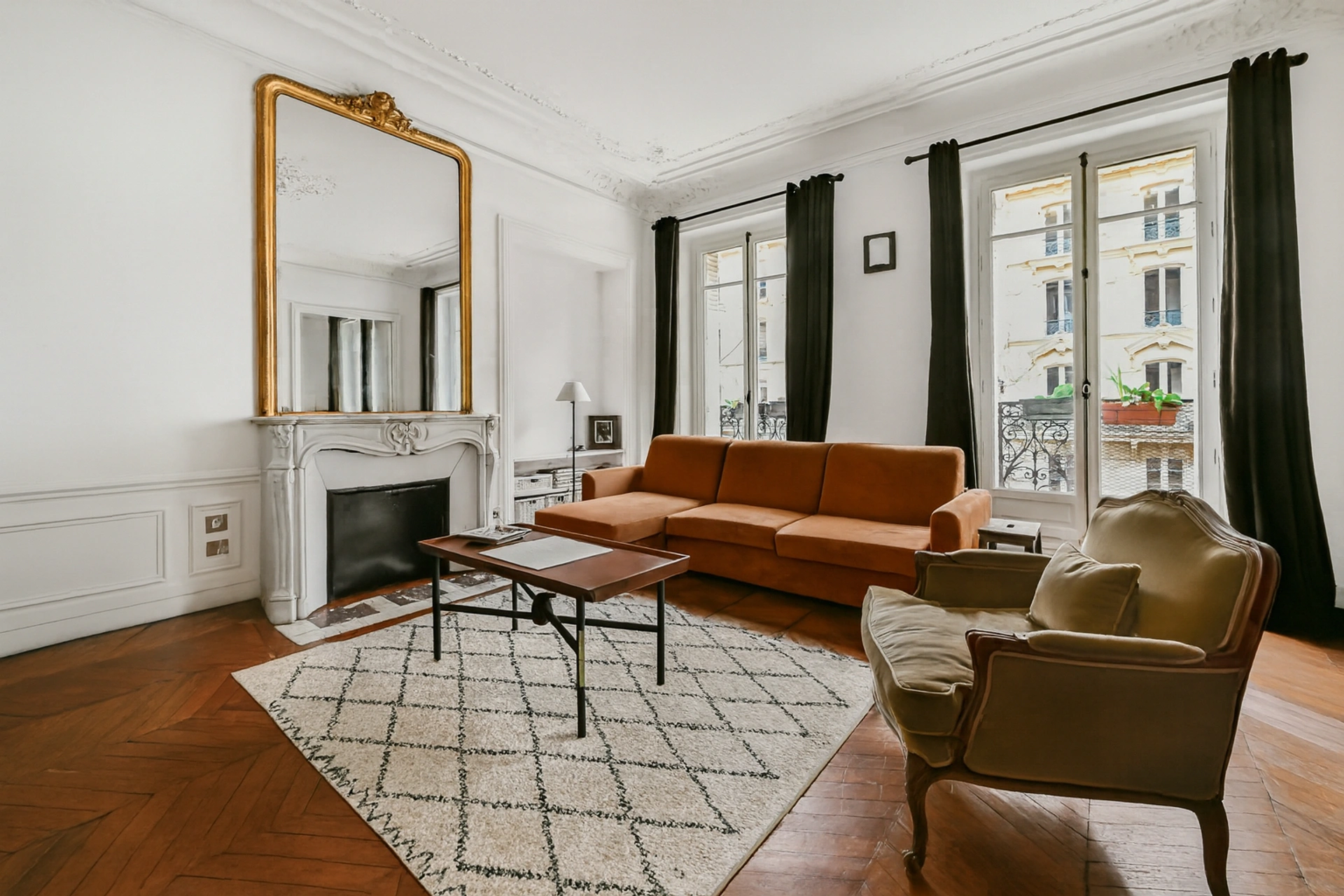 3,25m de hauteur sous plafond, traversant (exposé SE/NO), agencement optimal avec les pièces de vie sur rue et le côté nuit sur cour, charme de l'ancien avec parquet point de hongrie, moulures et cheminées - doté d'un ascenseur.