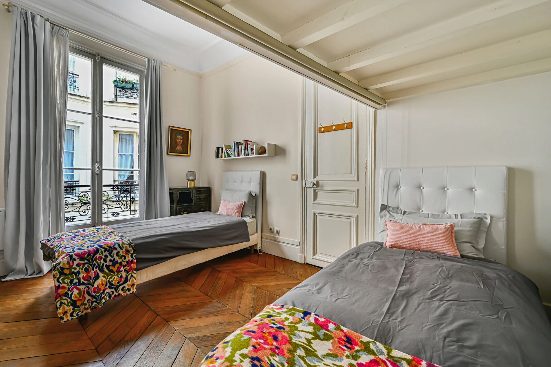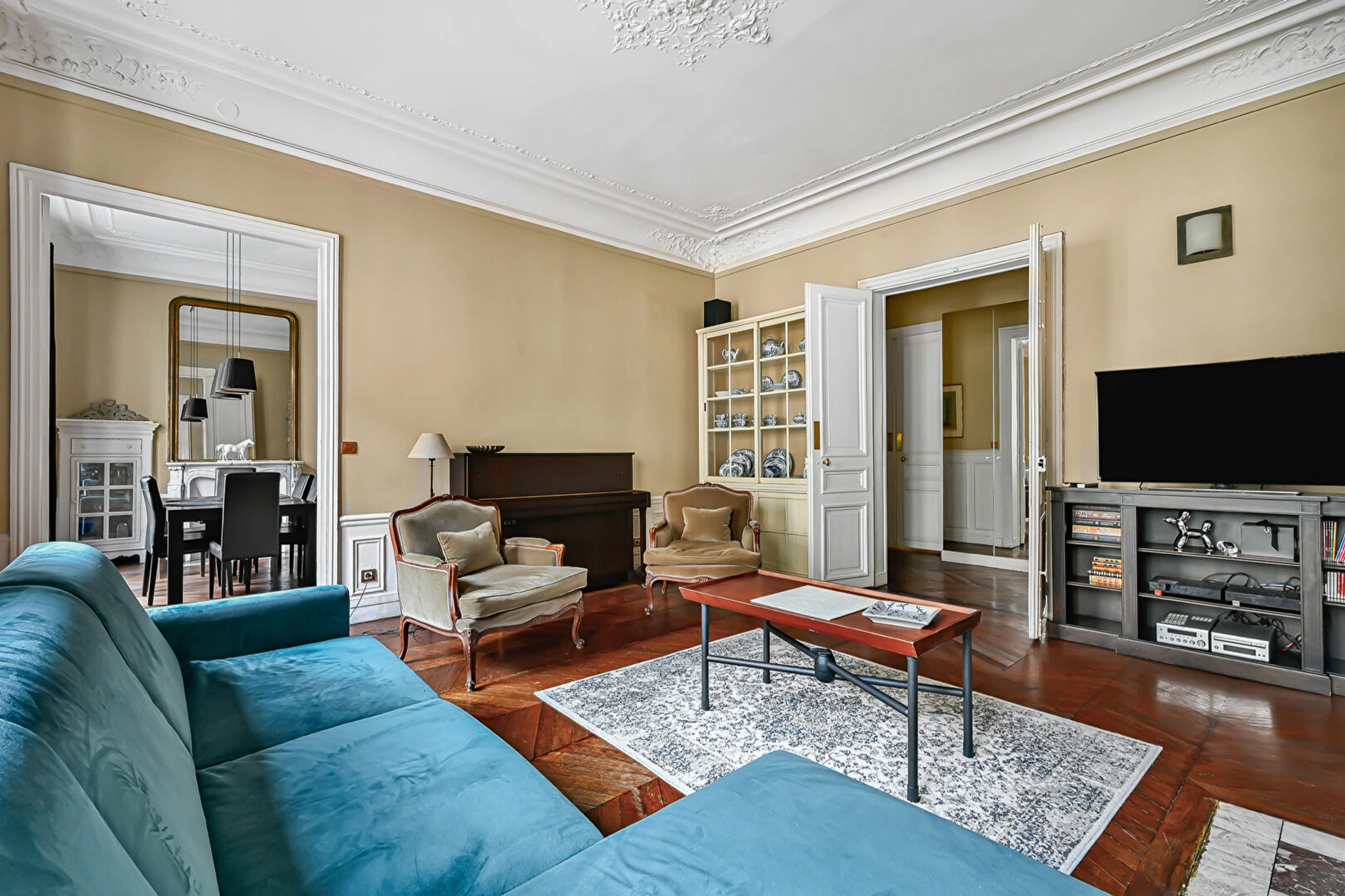 3,25m de hauteur sous plafond, traversant (exposé SE/NO), agencement optimal avec les pièces de vie sur rue et le côté nuit sur cour, charme de l'ancien avec parquet point de hongrie, moulures et cheminées - doté d'un ascenseur.