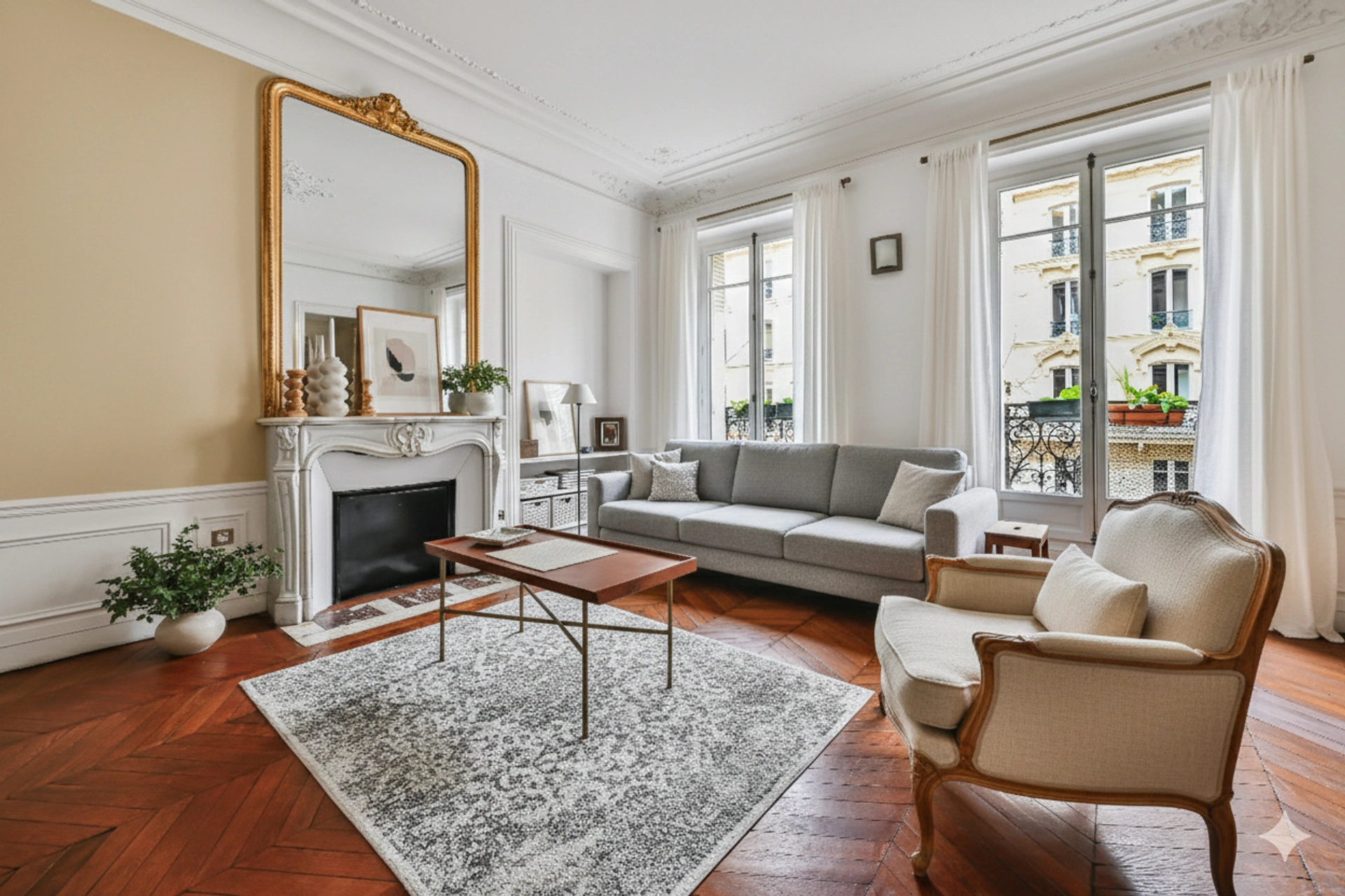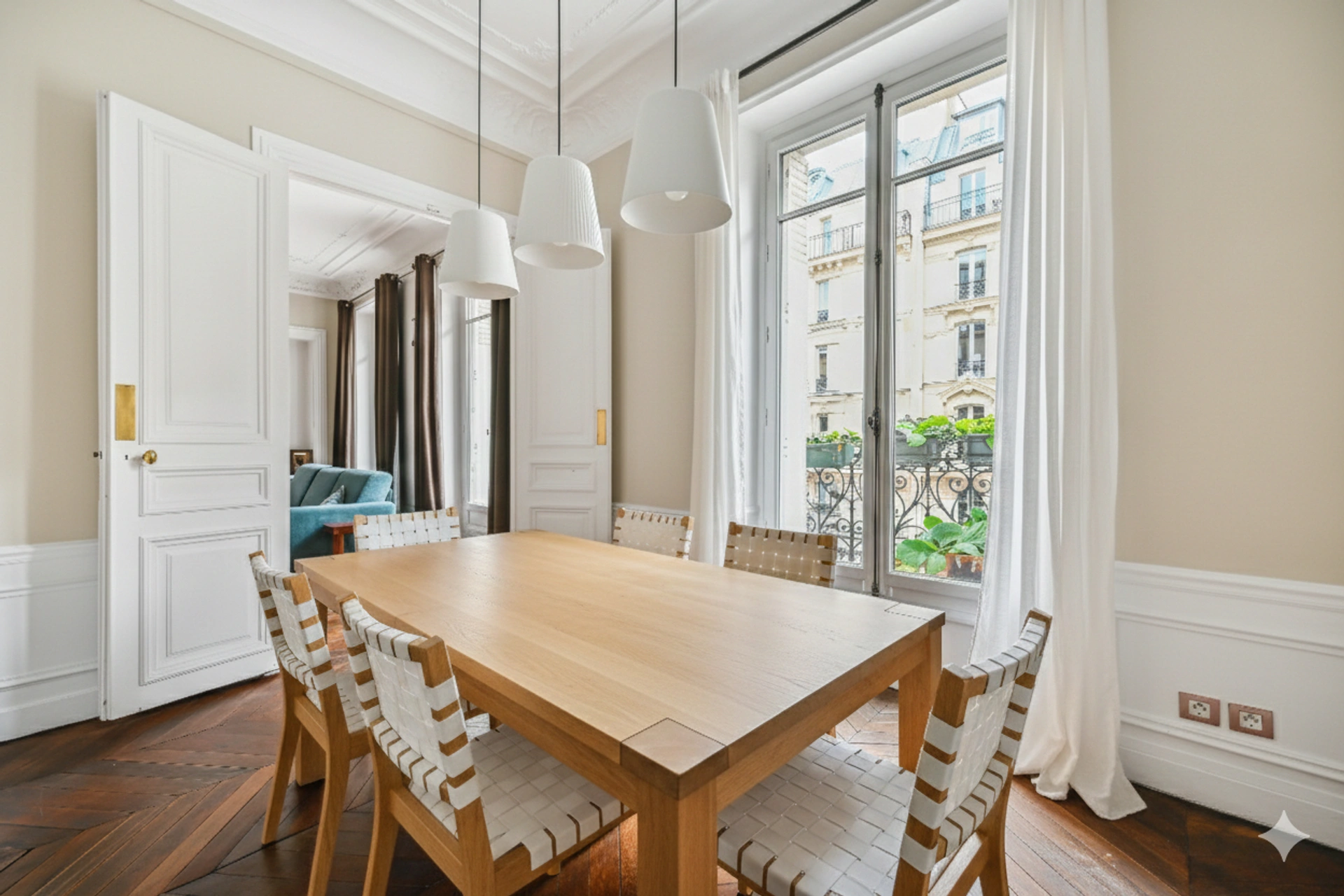 Le balcon filant - est la pierre angulaire de l'immeuble Haussmannien : ici il est exposé sud est et permet de s'offrir de la verdure sur 6,5m2 et donne sur les pièces de vie (salon et salle à manger).