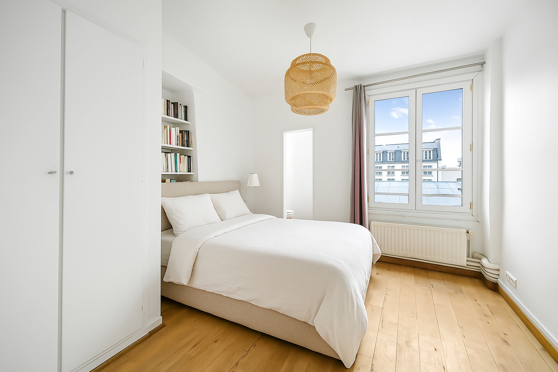 Sur cour, une chambre avec dressing et salle de bains. Possibilité de créer très facilement une deuxième chambre.