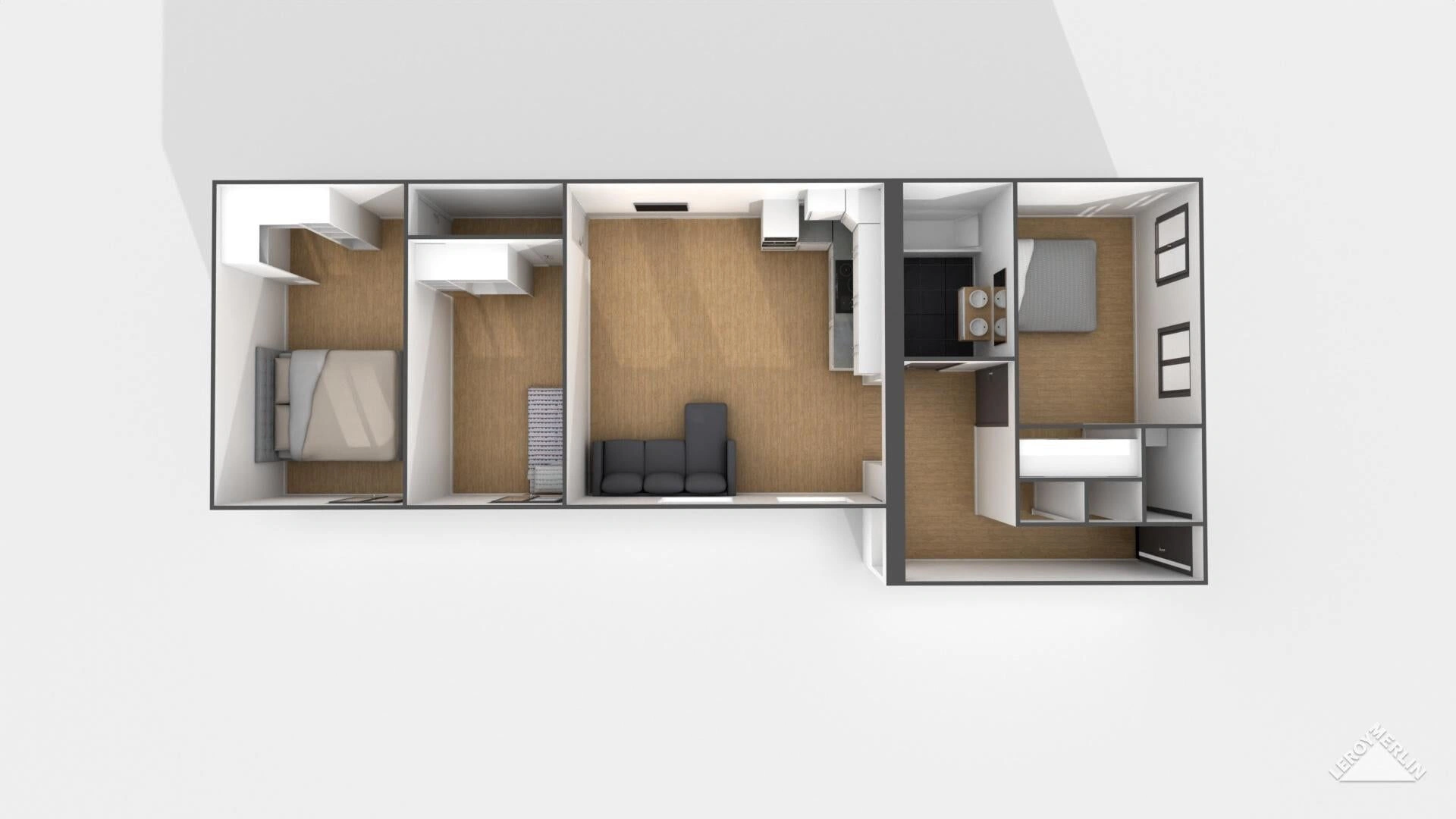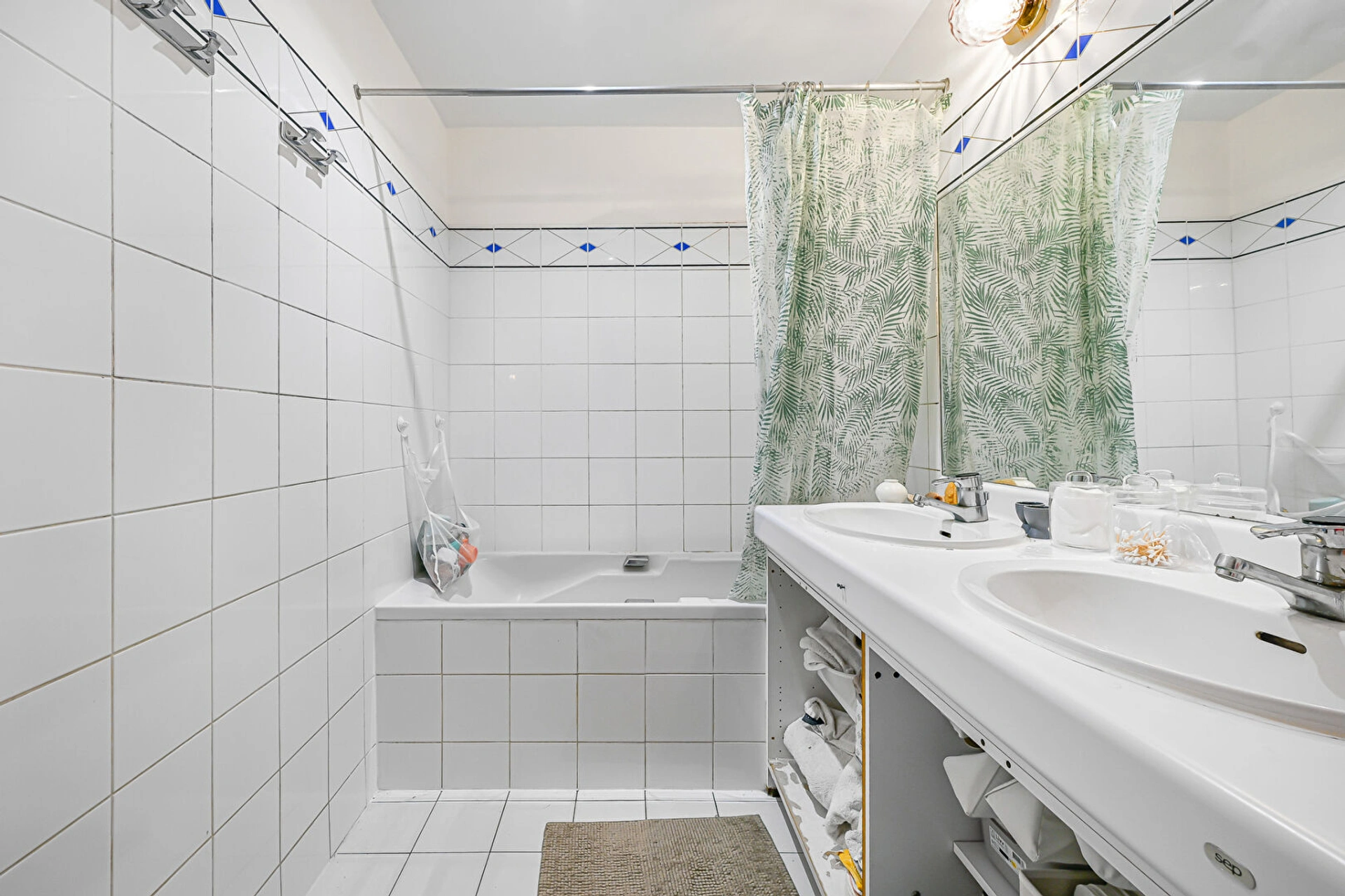 L'appartement se compose comme suit : une entrée qui mène à un double séjour de presque 40 m2 avec sa cuisine ouverte équipée et aménagée, deux grandes chambres avec dressing , SDB avec rangements et WC séparés.
