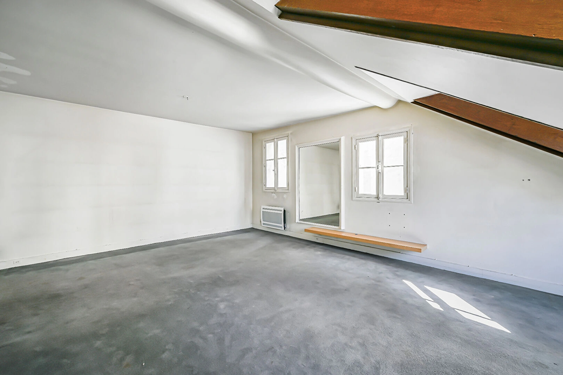 Face à vous, c'est une très belle pièce de vie de 27.86 m au sol (23,76 carrez) qui se présente à vous. Cet espace lumineux (4 fenêtres, double exposition), plein de charme offre de très beaux volumes et la liberté d'imaginer un lieu chaleureux avec des espaces distincts (chambre, salon, coin repas).