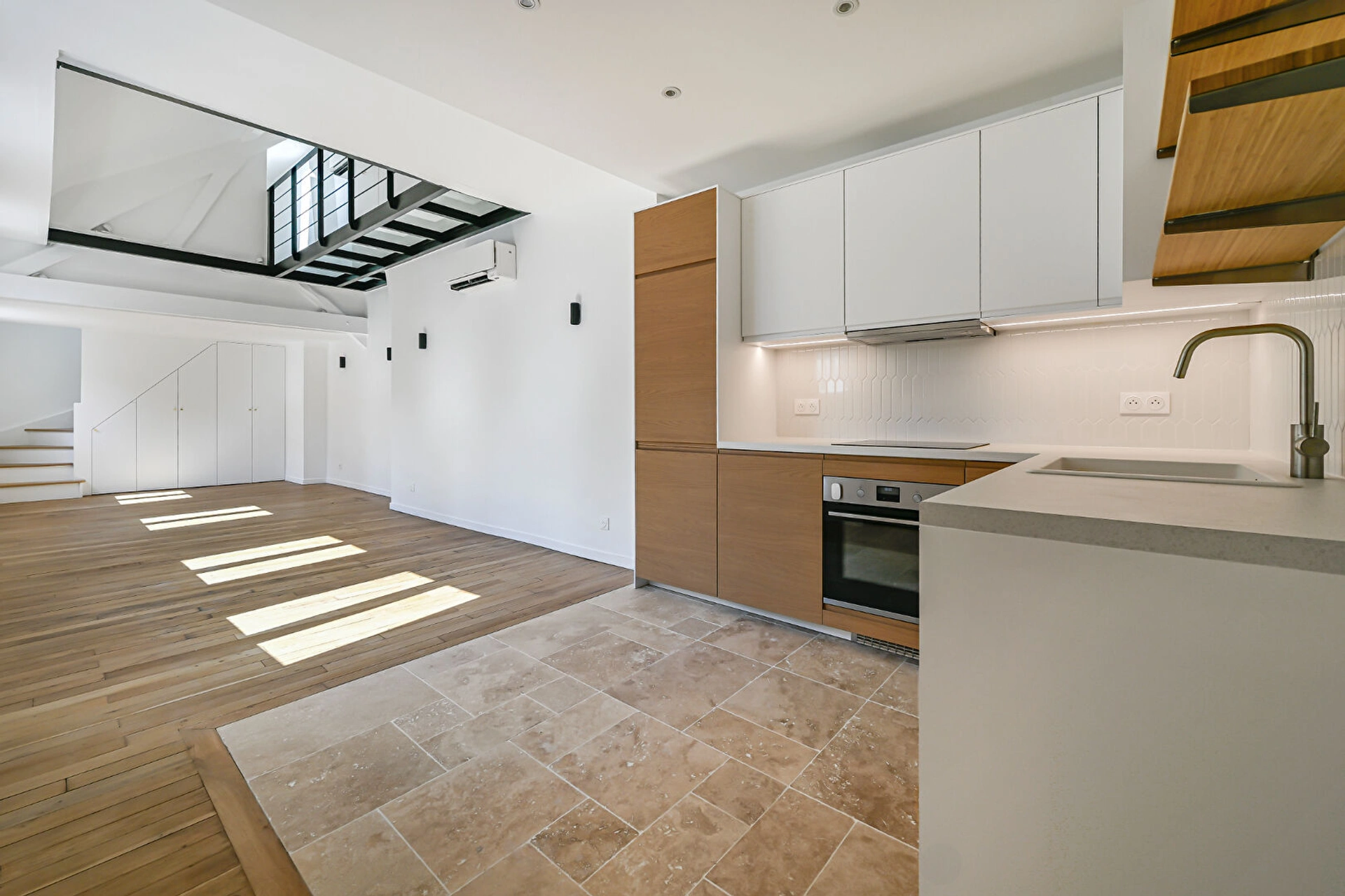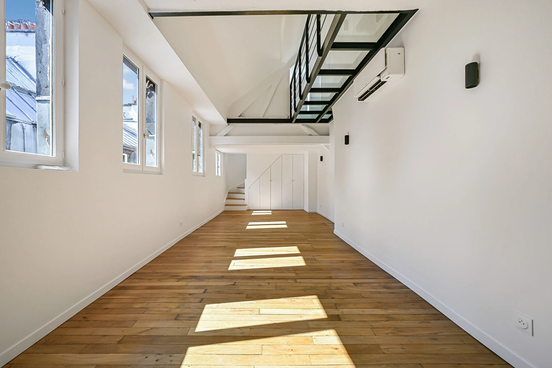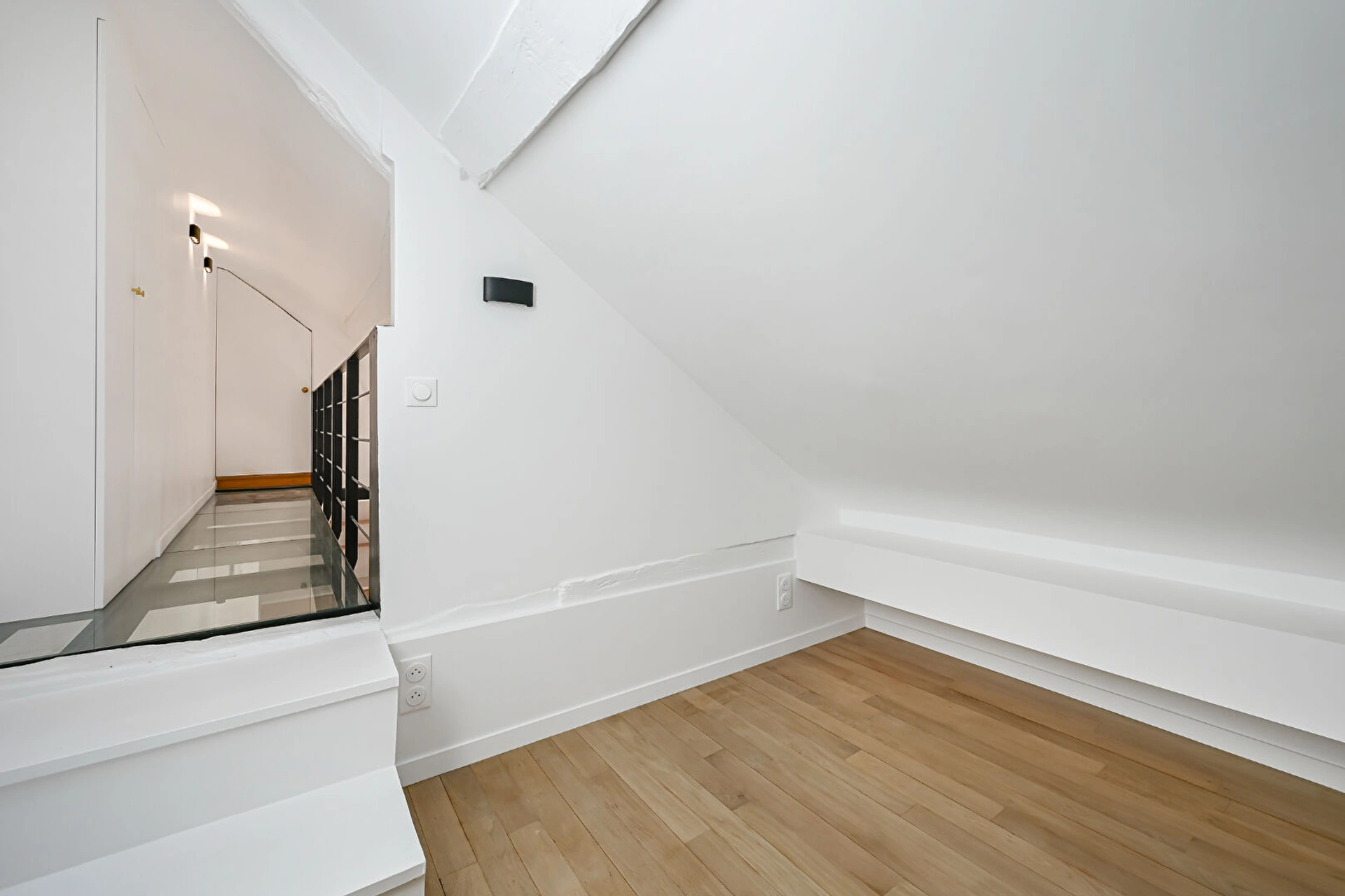 Paris 7ème - Ascenseur - Découvrez ce bel appartement en duplex entièrement rénové, isolé et équipé. Situé au dernier étage par ascenseur, il se compose d'une double pièce de vie avec cuisine ouverte et toute équipée, d'une salle d'eau avec WC, d'une pièce annexe pour bureau ou chambre, et à l'étage d'un coin nuit et d'une passerelle en verre qui donne accès à un dressing avec point d'eau : WC et lavabo.