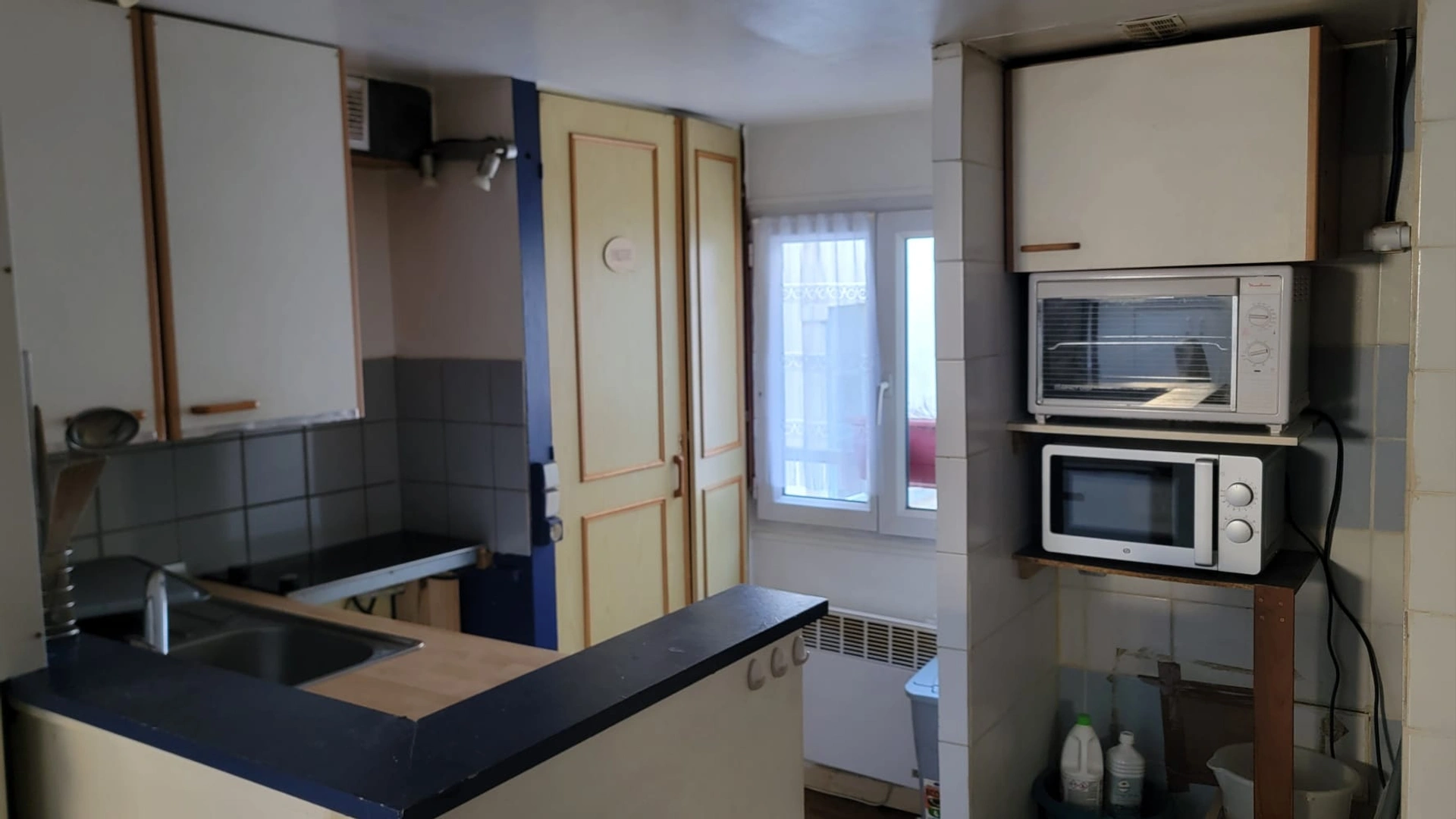 Traversant sur rue et cour, il se compose d'une pièce principale avec espace nuit en mezzanine, d'un coin cuisine, d'une douche et d'un véritable WC indépendant.