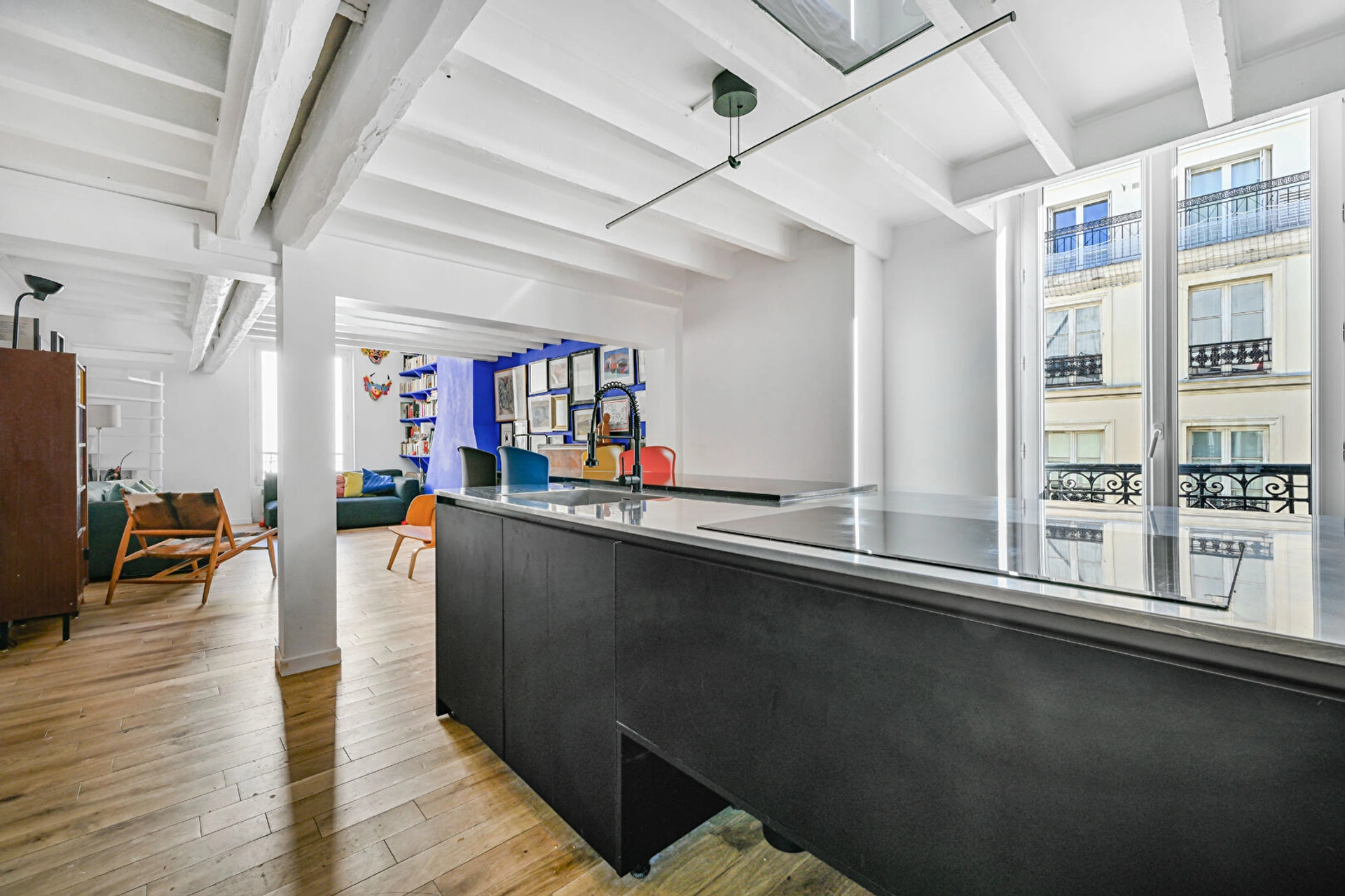 Découvrez ce joli duplex situé au 3e étage au sein d'un bel immeuble ancien et classé (style Restauration) avec en palmarès plusieurs tournages réalisés dans la cour. Le bien se compose d'une entrée avec salle d'eau (douche et WC), d'une grande pièce de vie traversante avec cuisine ouverte haut de gamme (îlot Veneta Cucine, inox brossé, Dekton) et à l'étage de 2 chambres et d'une SDB.