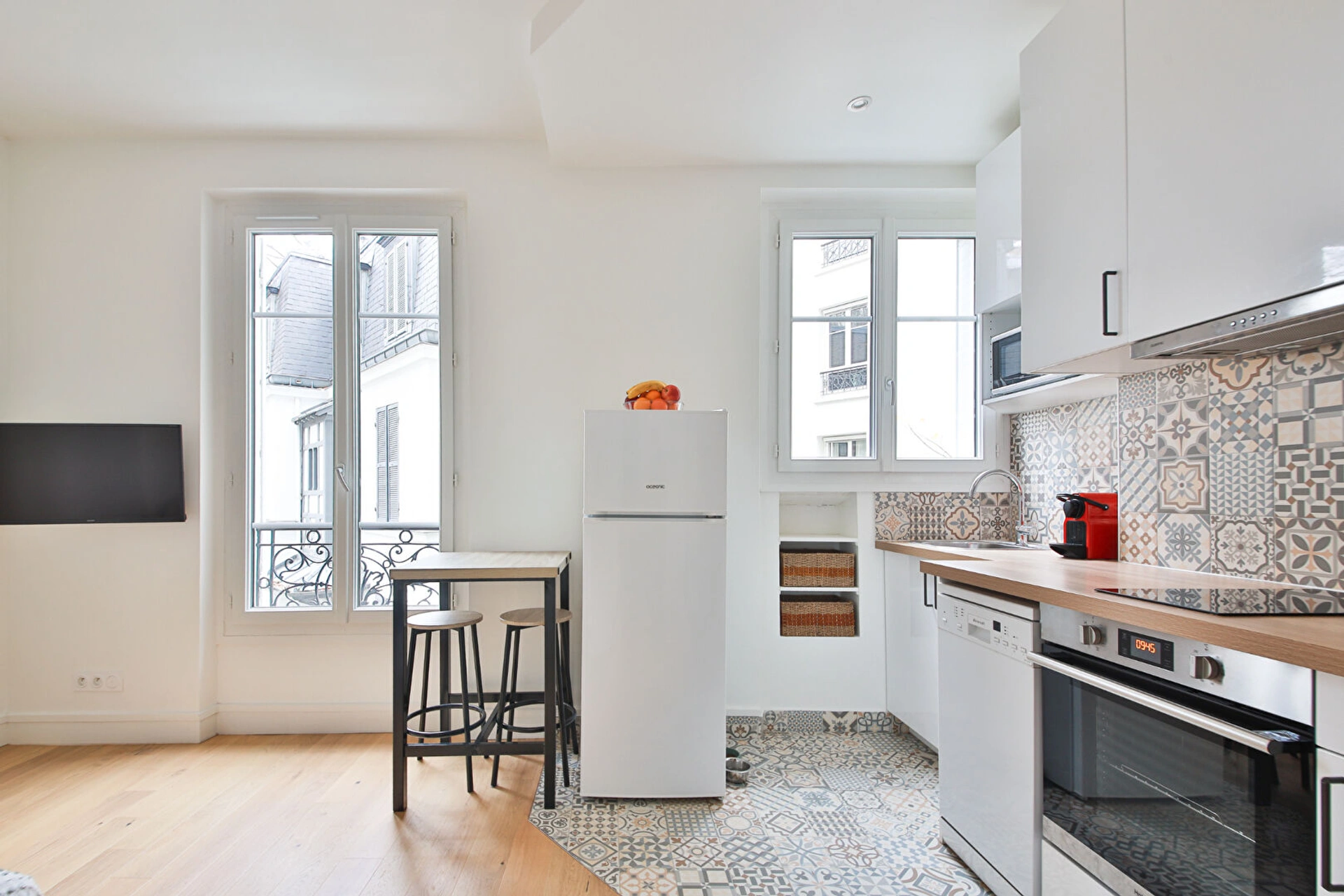 Cet appartement est situé au 1er étage avec ascenseur et donne entièrement sur cour. Il a été refait à neuf par un architecte.